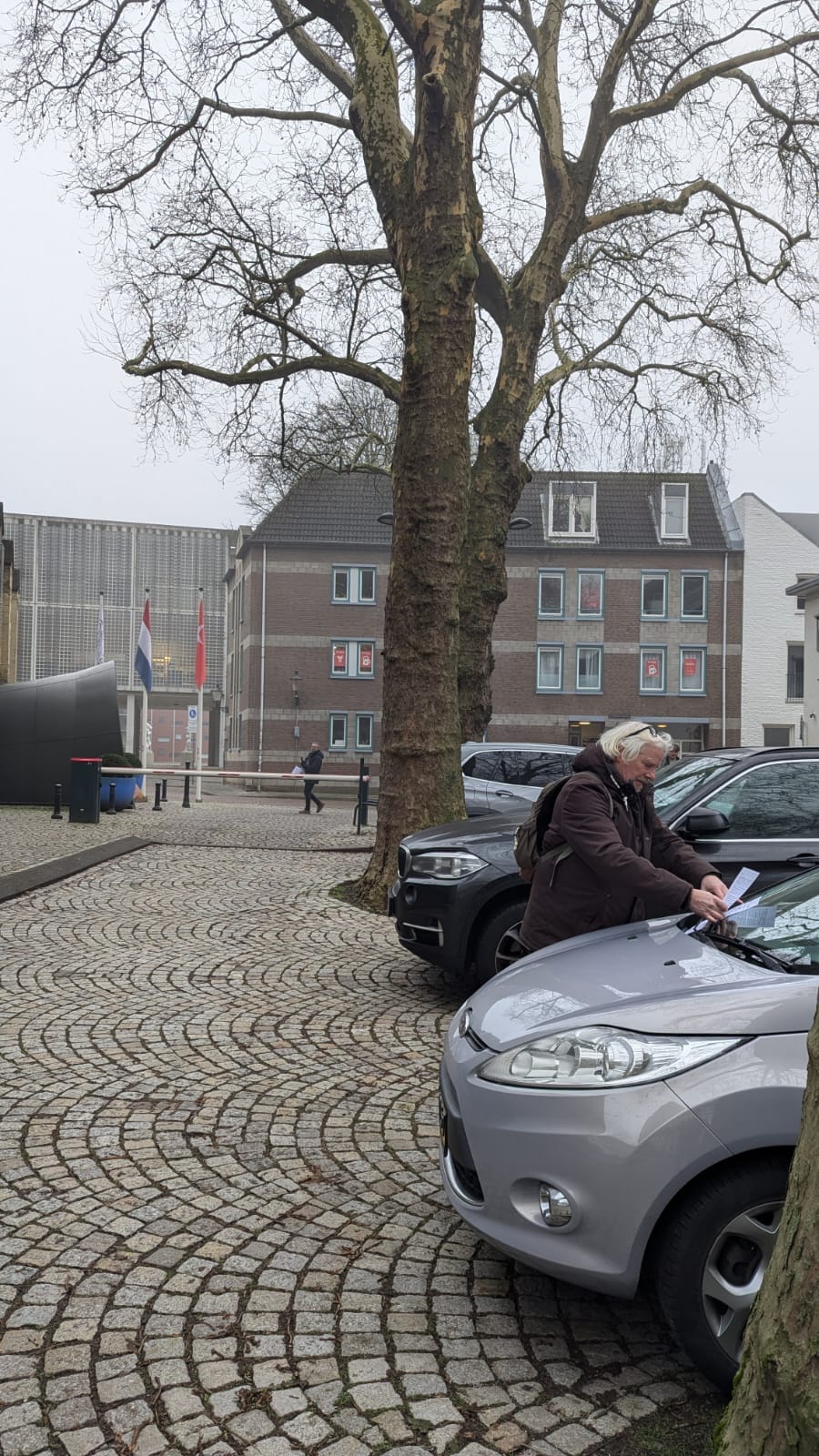 De SP Maastricht heeft symbolische ‘parkeerboetes’ uitgedeeld aan de 'langparkeerders bij het Kruisherenhotel van de Oostwegel Collection aan de Kommel.