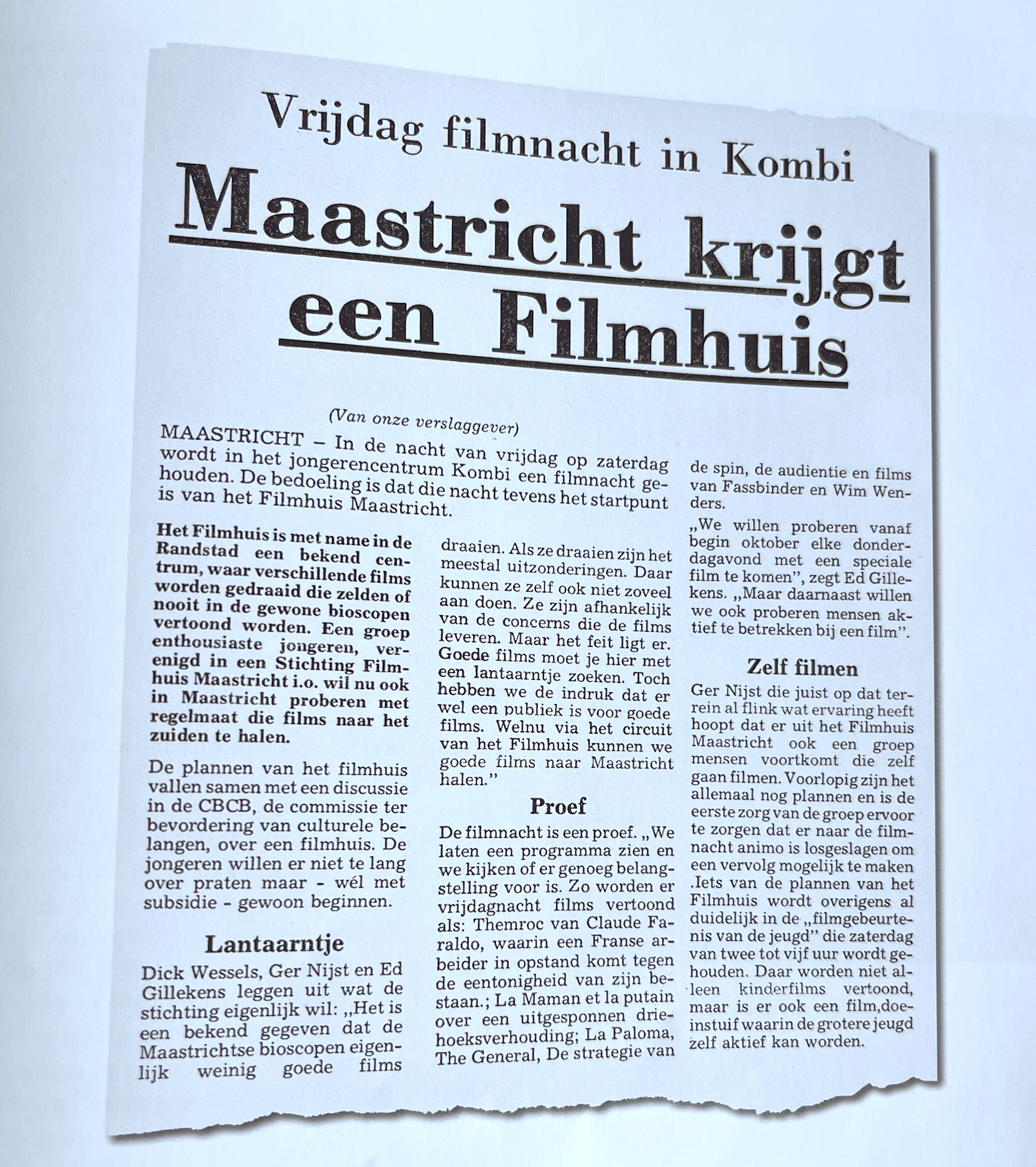 We schrijven de jaren zeventig van de vorige eeuw. Het college van burgemeester en wethouders ontvangt in juni 1976 een brief van een in oprichting zijnde Stichting Filmhuis. De initiatiefnemers zijn ontevreden over het filmaanbod in de stad. De bestaande bioscopen presenteren in hun ogen qua films ‘een zeer eenzijdige keuze’.