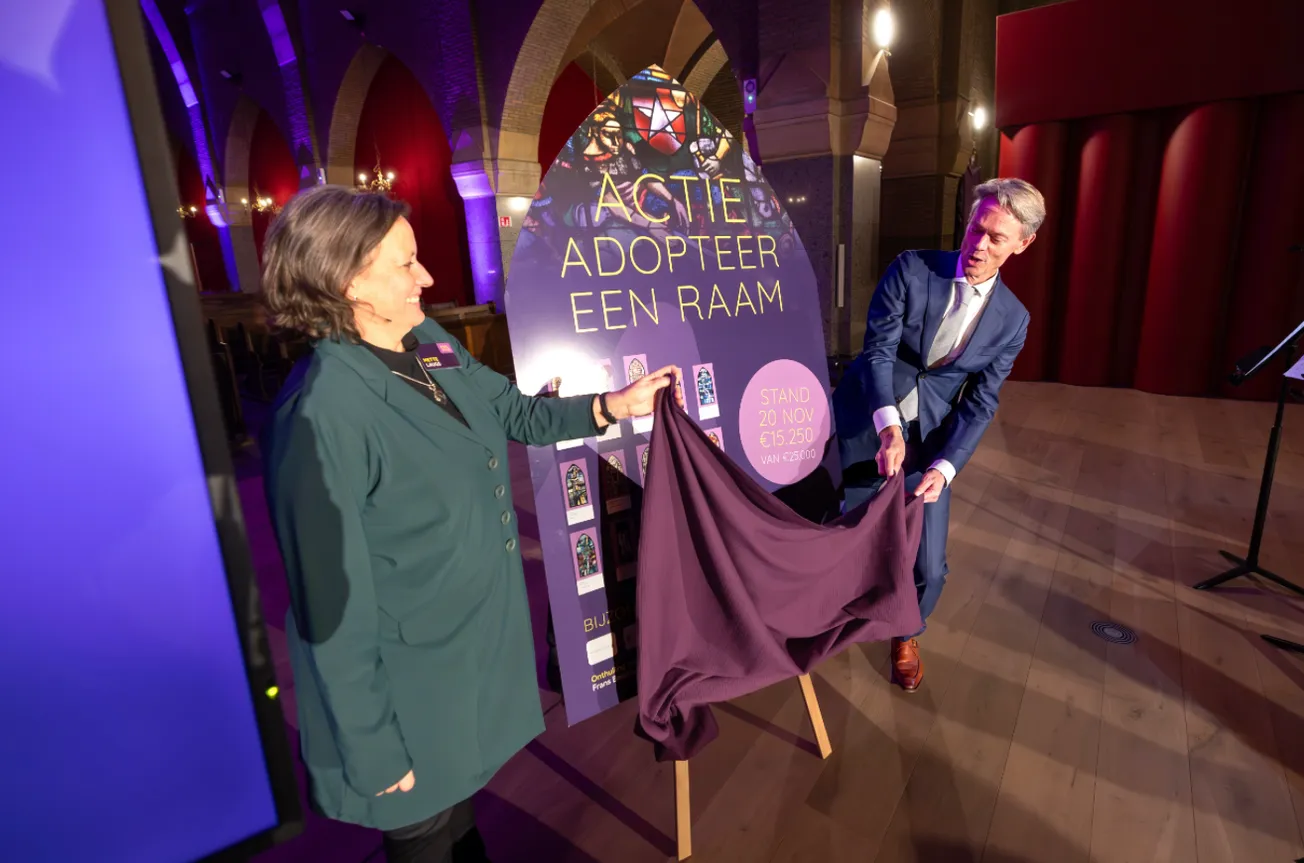 Wethouder Frans Bastiaens en directeur bestuurder Mette Laugs van Philzuid hebben recent de plaquette onthuld met de namen van de adoptanten van ‘Adopteer een raam’.