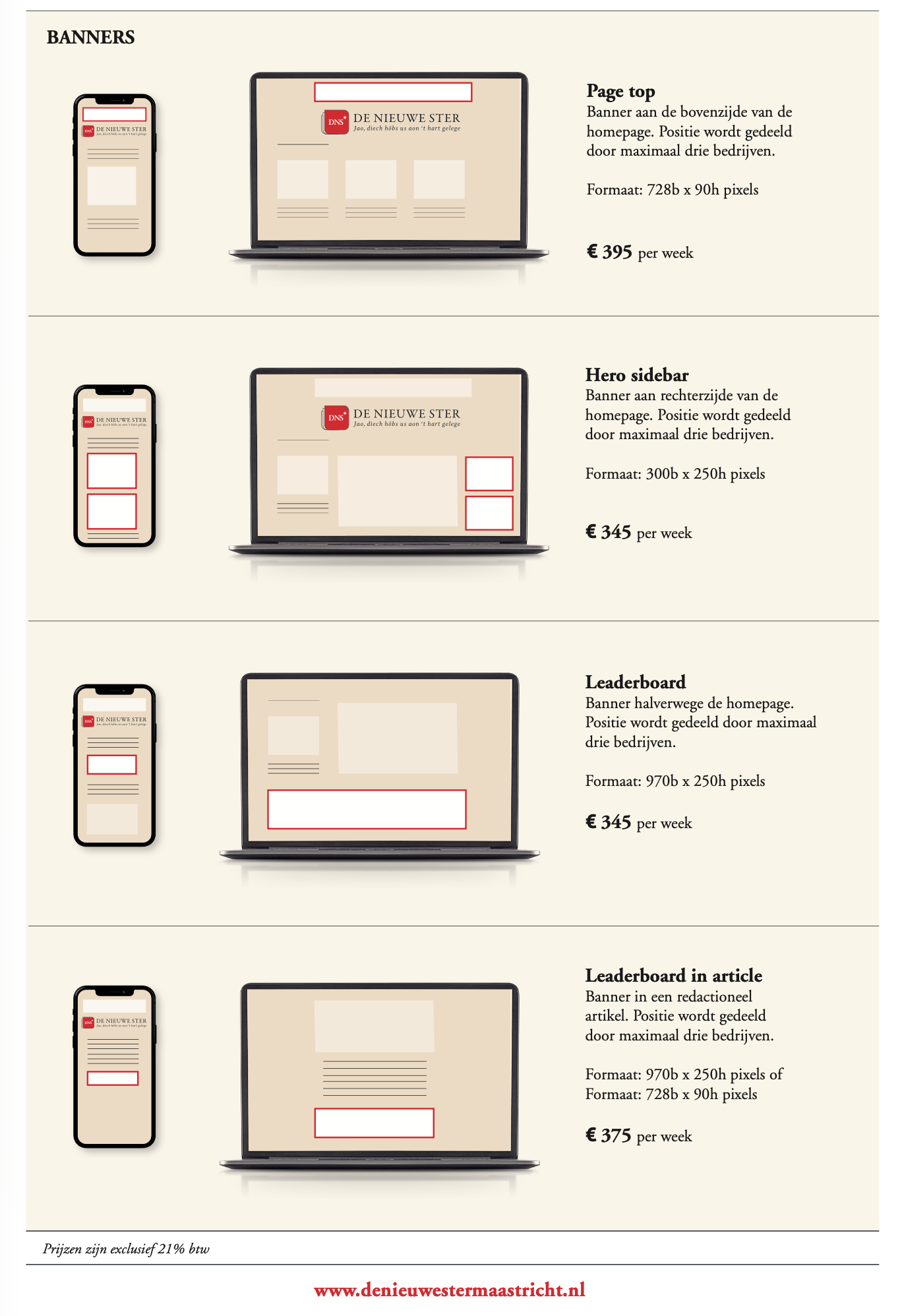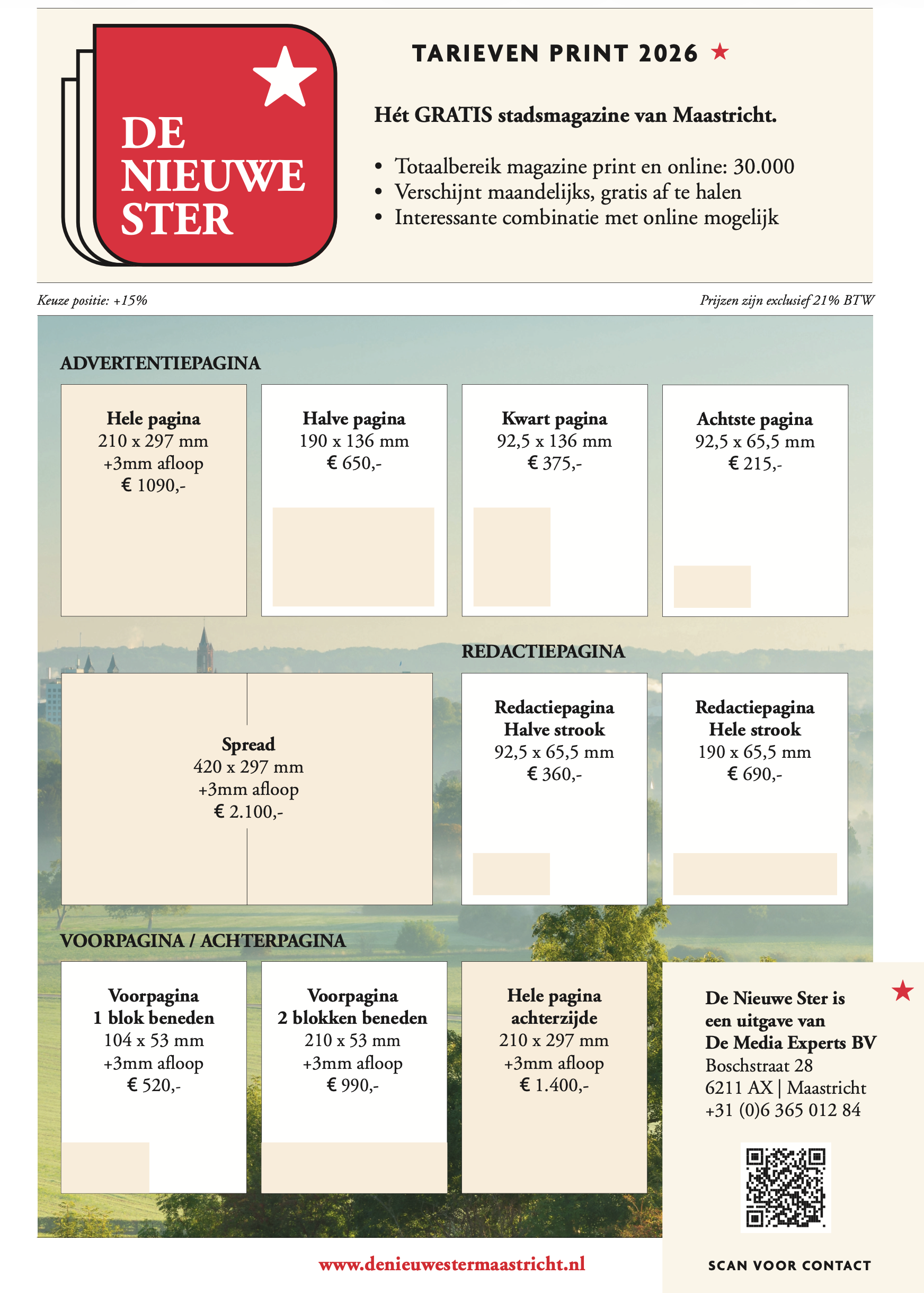 Iedere maand het gratis magazine De Nieuwe Ster (totaalbereik magazine print: 30.000).