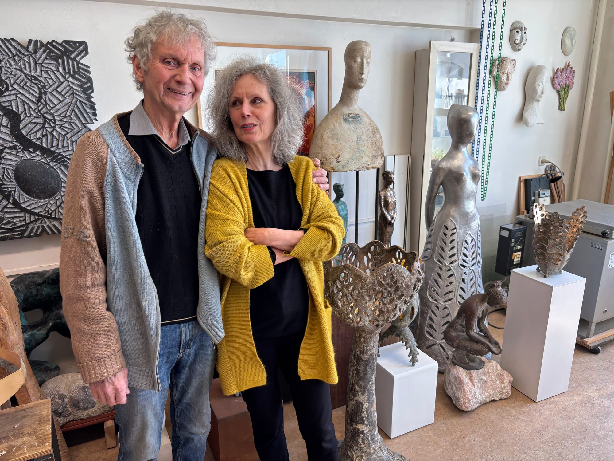 Als we binnenvallen bij Frits van Roon en Marianne van der Bolt, aan de Kasteel Schaloenstraat 8, valt Frits meteen met de deur in huis. "Ik ben niet van de lichting kunstenaars die een hoop zand op de grond gooit, daarnaar kijkt en zegt: dit is de wereld." De beide kunstenaars komen uit Heerlen, maar konden daar geen goede plek vinden. Ze zijn zeer tevreden over hun atelier van SAM. Groot genoeg, betaalbaar. Ze betalen 280 euro per maand. Frits werkt vooral beeldend, Marianne met brons en met andere materialen. Marianne houdt van mythologie.