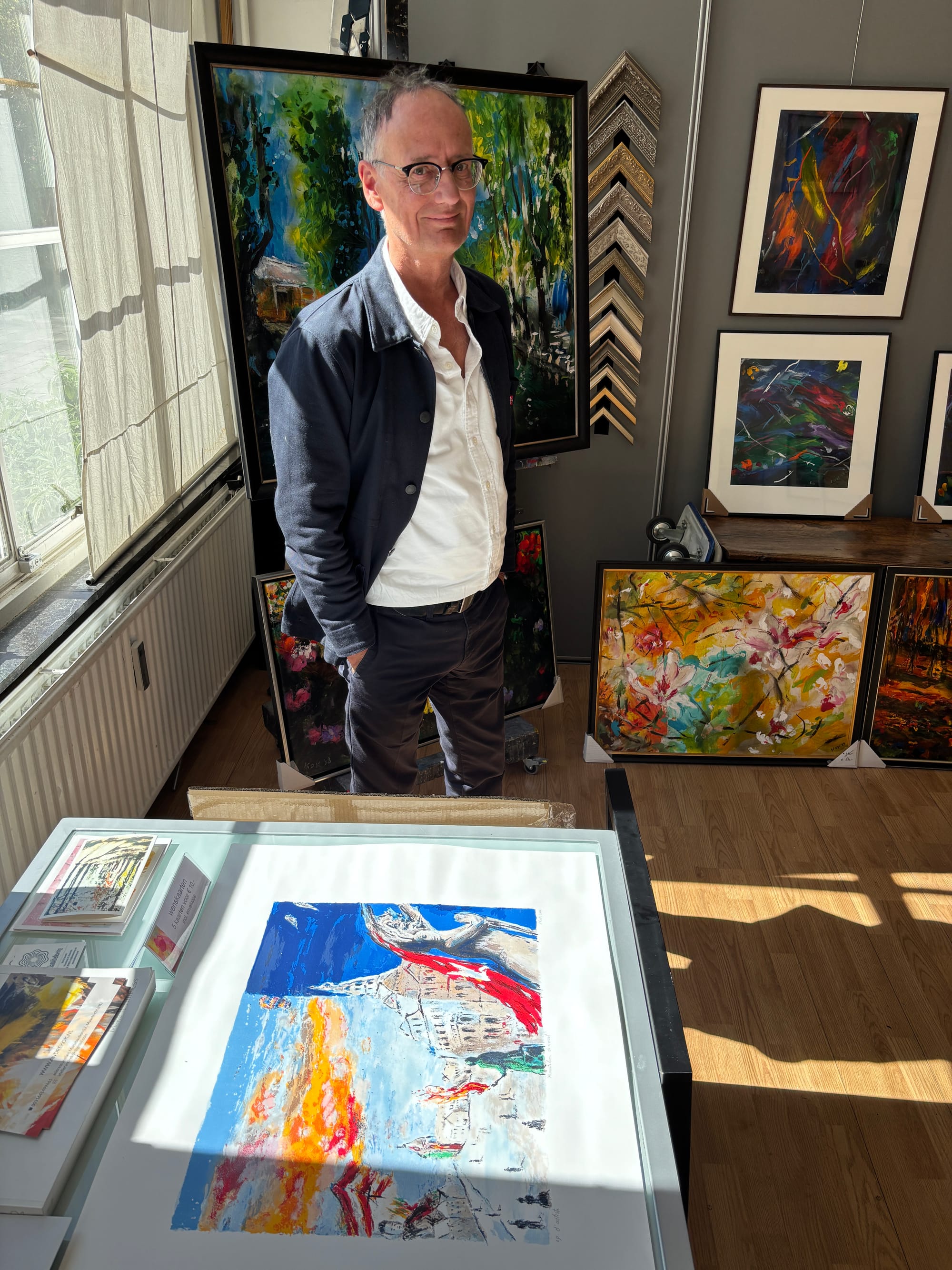 Aan het Mariabastion 50 treffen we André Kok aan. De Brabander studeerde van aan de Stadsacademie voor toegepaste kunsten in Maastricht. Hij bleef daarna hangen in Maastricht. Vestigde zich in De Ravelijn, waar hij nu al tientallen jaren zijn atelier had. Tegenwoordig schildert hij veelal abstract. "Deze vorm van schilderen is veel risicovoller. Je schildert vanuit gevoel. Er verdwijnen daardoor ook wel eens werken in de prullenbak omdat ik vind dat ze mislukt zijn. Maar dit soort werk maakt het voor mij ook veel spannender en bevredigender wanneer het slaagt. Opmerkelijk is dat André naast kunstenaar ook nog professioneel violist is. "Ik wissel die vakken met heel veel plezier af. "Ik wissel die twee creatieve vakken met heel veel plezier af.