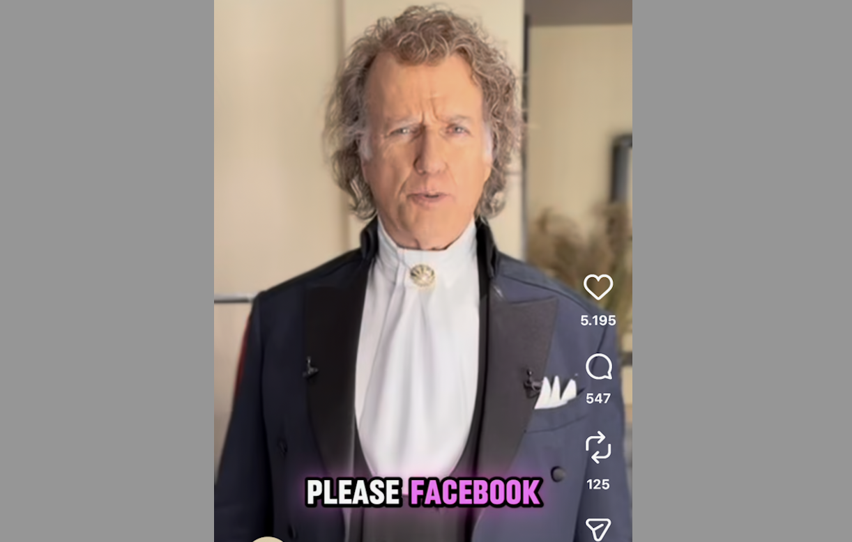 'Please Facebook. Stop this. Do something. Protect our fans." André Rieu doet op social media een dringend beroep op Facebook om iets te doen tegen de vele nepaccounts en nepberichten op social media. Veel fans trappen erin en zijn soms veel geld kwijt.