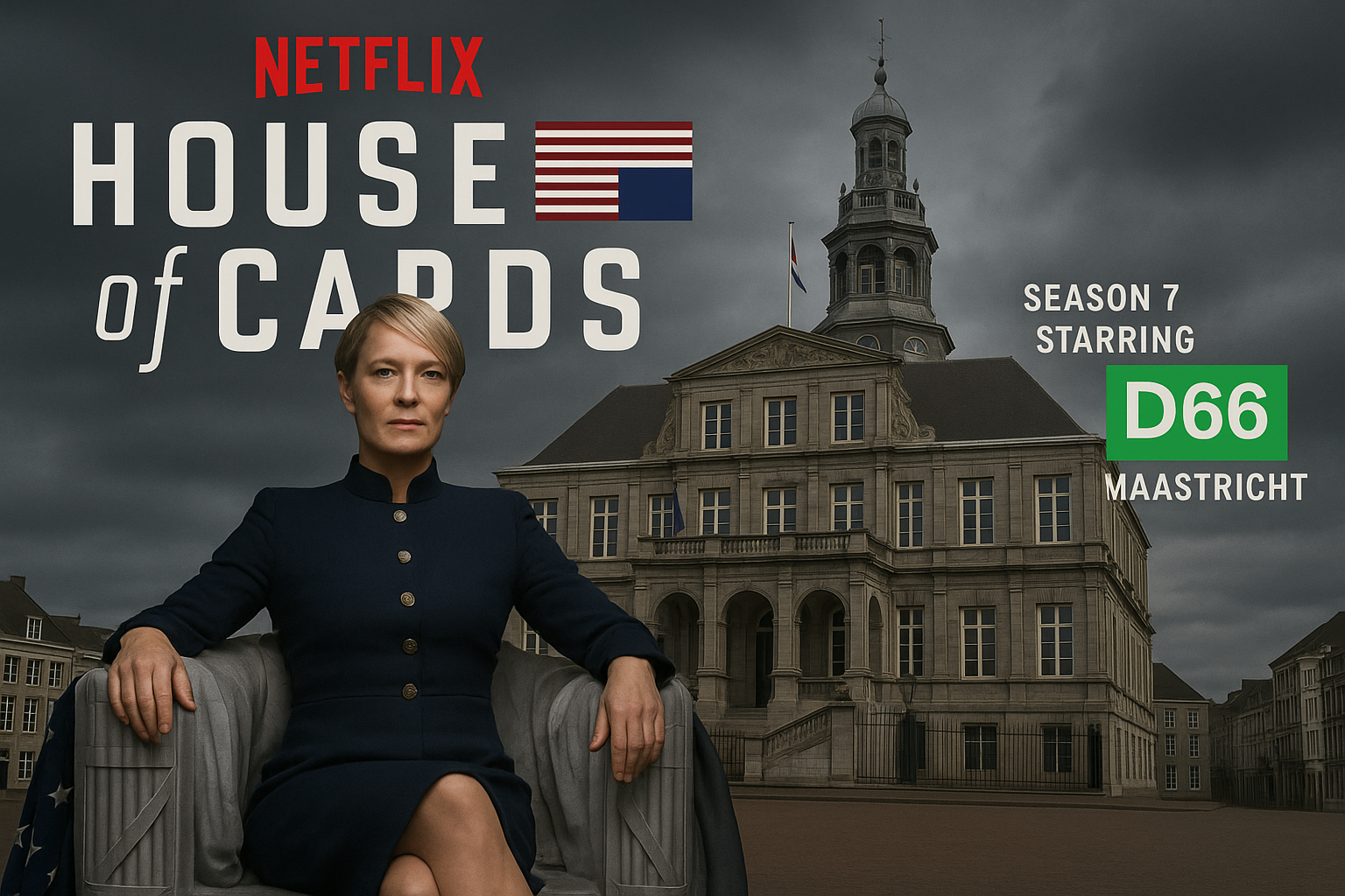 Twee weken geleden ben ik begonnen met het kijken naar de Netflix-serie House of Cards. 'Nu pas?', zullen jullie denken. Maar toen de serie in 2013 werd gelanceerd was ik bij lange na nog niet geboren. Overigens ben ik erg blij dat ik ben gaan bingewatchen naar wat er zich allemaal afspeelt in the Oval Office en ver daarbuiten. Want afgelopen week hadden we binnen D66 Maastricht ook een House of Cards. Mijn fantasie sloeg gelijk op hol bij de rolverdeling: Xavier Stassen als de uit de dood herrezen Frank Underwood? Marlou Jenneskens als Claire Underwood? Johan Pas krijgt in ieder geval de rol van Peter Russo. Ik ben er nog niet uit welke rol Paul van de Kandelaar krijgt. En wie zou de rol van Doug Stamper hebben gespeeld in de lijstadviescommissie van D66 Maastricht? Ik kan niet wachten totdat het zevende seizoen wordt uitgezonden.