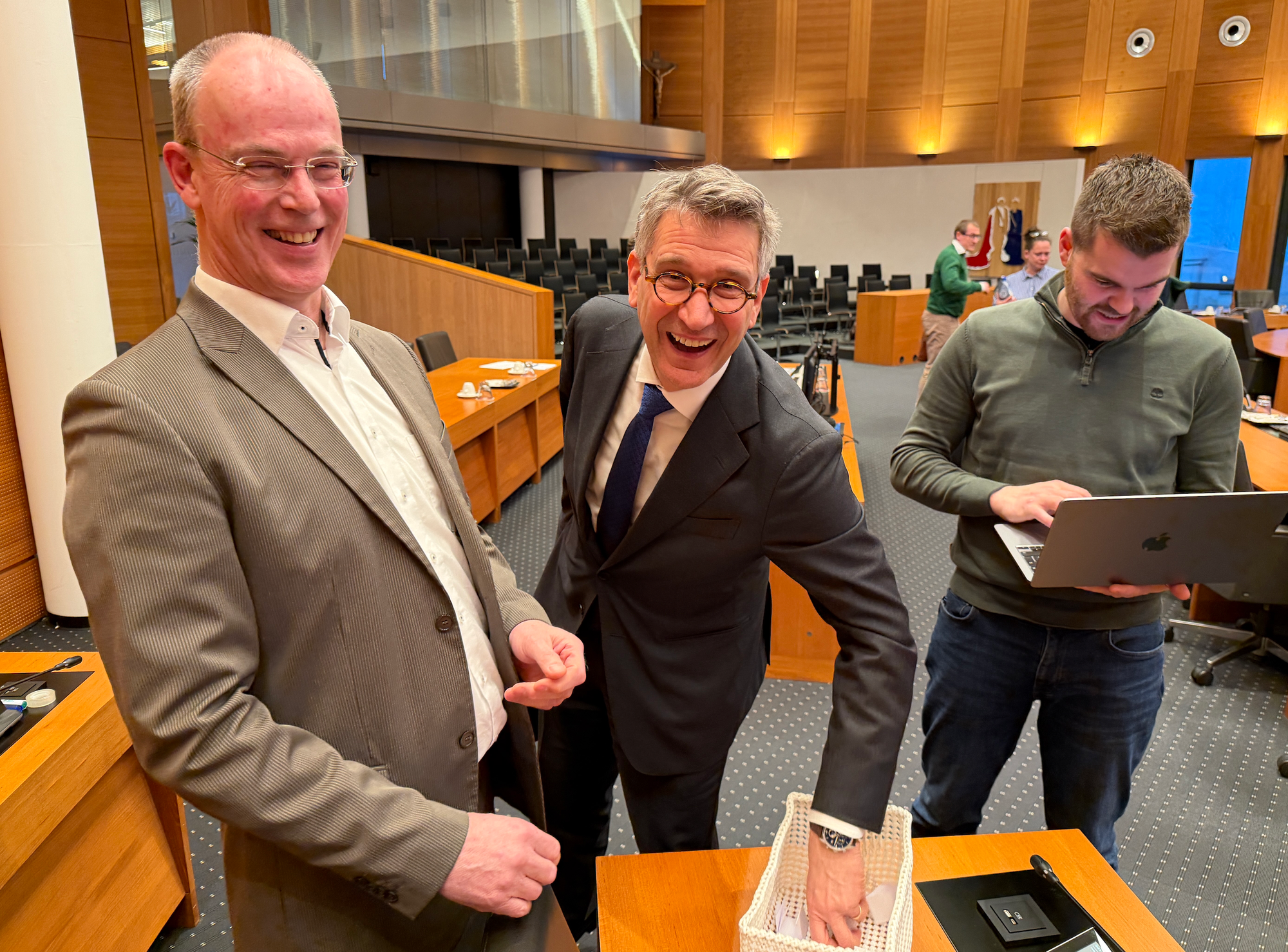 Even over Jo Smeets, fractievoorzitter van Maastricht Van NU en Floris Soeren, kandidaat raadslid voor de PvdA. Het is dat alle ministersposten en de posten van staatssecretarissen al vergeven waren toen onderstaande foto werd gemaakt, anders hadden we serieus gedacht dat Jo Smeets en Floris in het nieuwe kabinet zouden zitten. Waarom zou je anders uitgenodigd worden in Utrecht bij het populaire radioprogramma Spijkers met Koppen? Geen zorgen, het ging weliswaar over de Aw Brögk, maar die blijft gewoon. Jo en Floris blijven zich inzetten voor onze stad.