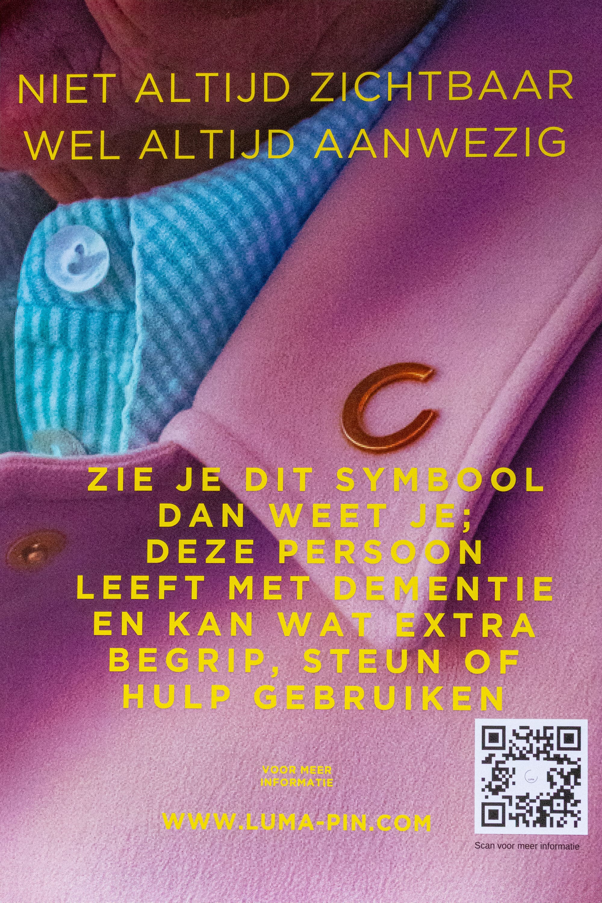 “Mijn moeder leeft met dementie”, vertelt Sharon. “En als er zo’n moment van onbegrip bij buitenstaanders ontstaat, zou je eigenlijk willen zeggen: ‘sorry, maar mijn moeder heeft dementie’. Maar naar haar toe vind ik dat kwetsend, zij kan er immers zelf niets aan doen. Op enig moment dacht ik ‘hoe fijn zou het zijn als er een eenvoudig, stijlvol symbool bestond dat stilletjes zegt: wees geduldig, toon begrip’. Hier ben ik een dik half jaar geleden mee aan de slag gegaan, met als resultaat de LUMA-pin. Dit is een subtiel sieraad dat door de persoon met dementie gedragen kan worden. Ik heb gekozen voor een cirkel waarvan een klein stukje ontbreekt. Die open cirkel staat symbool voor het stukje herinneringen, taal of begrip dat bij mensen met dementie verloren is gegaan. Dit onzichtbaar deel wil ik zichtbaar maken, waardoor buitenstaanders weten dat ze even wat meer geduld en begrip moeten tonen.”