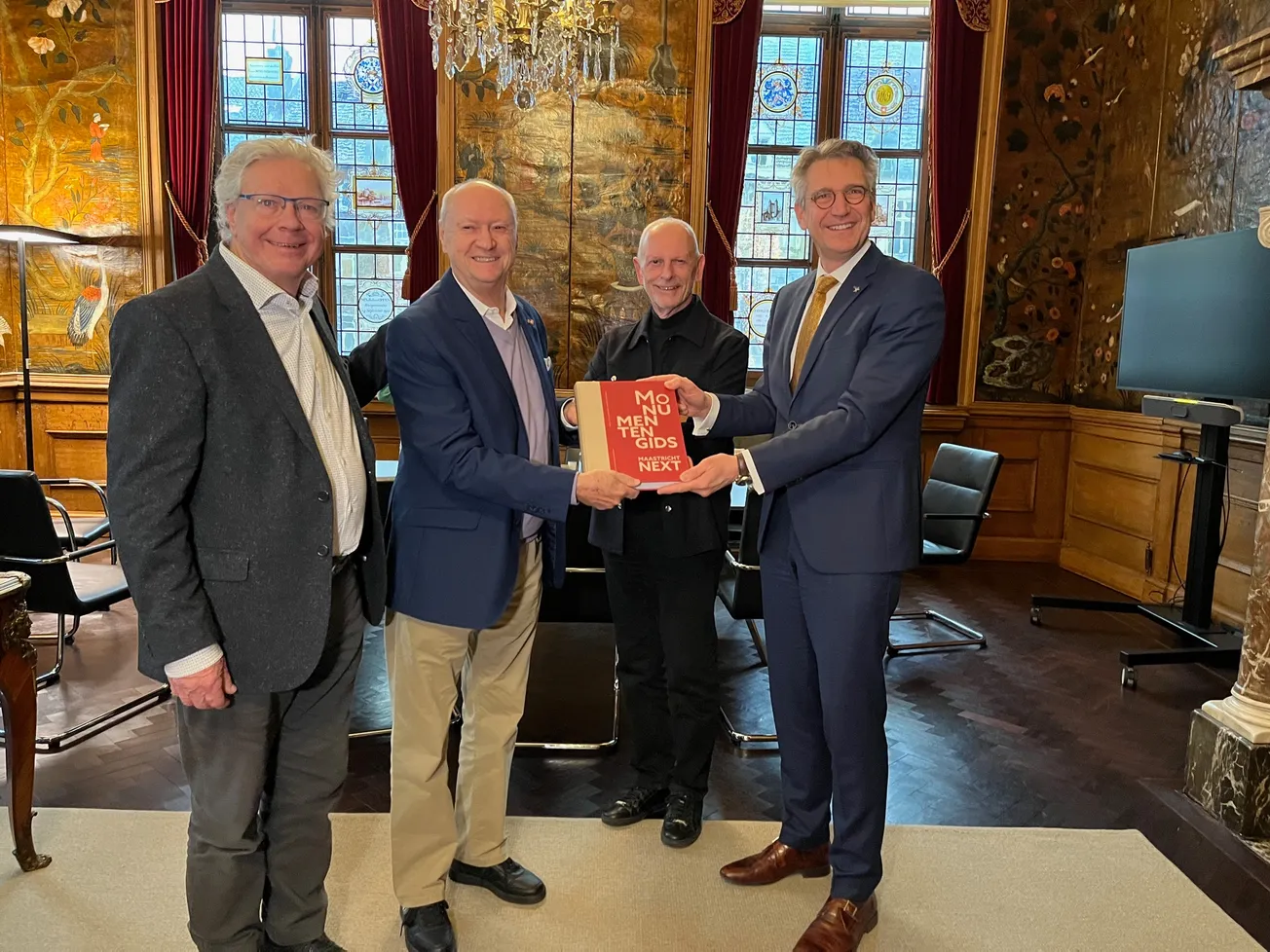De nieuwe Monumentengids van Maastricht, was nog niet gedrukt of meer dan duizend mensen tekenden in om een exemplaar te bemachtigen. Donderdag kreeg burgemeester Wim Hillenaar het eerste exemplaar van het naslagwerk uitgereikt door de auteurs.