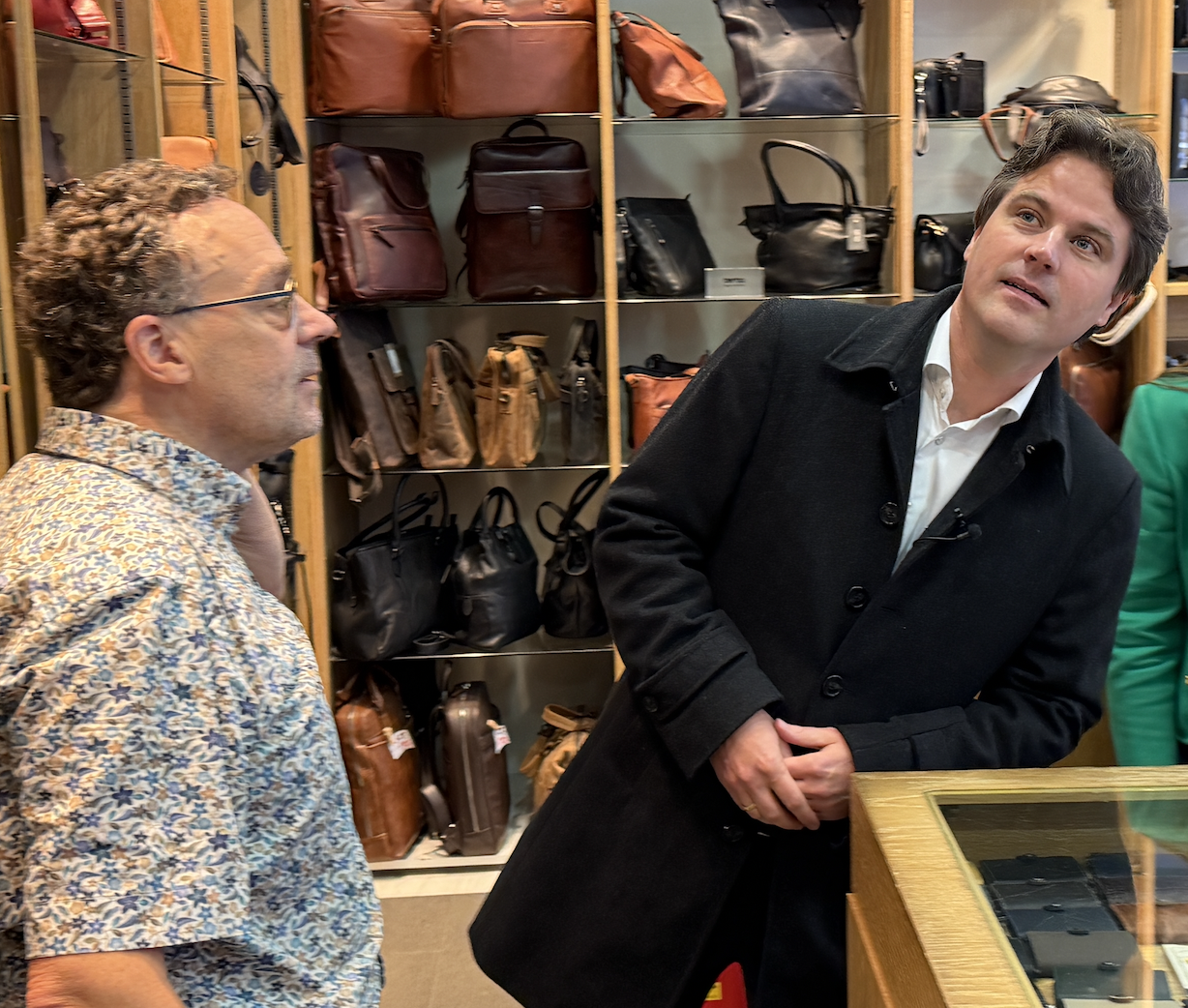 Bontenbal sprak met de ondernemers en hoorde diverse keren hoe lastig ze aan goed personeel kunnen komen. Bij Maurice en Mireille Custers van Basta at hij een broodje. Jurriaan Winckers vertelde Bontenbal over de 140-jarige historie van de zaak. "Het is moeilijk om juist wat ouder personeel te vinden." Bontenbal hoorde herenmode-specialist Jasper van Hugten vertellen over zijn corona-lessen. Maar ook over de sociale functie van de winkel. "Op zaterdag komt hier geregeld een meneer van 92 jaar die zich voor de deur laat afzetten. Hij gaat dan op die stoel zitten, en ik zoek jasje, hemd en pantalon voor hem uit. Ik help hem met uitkleden en aankleden bij het passen. Hij gaat graag goed gesoigneerd door het leven." Bontenbal luisterde aandachtig. En bekende rap dat hij 's ochtends snel wat kleren uit de kast had getrokken. Zijn outfit kon er nog prima mee door, zei Van Hugten, die zelf lijstduwer is bij het lokale CDA.