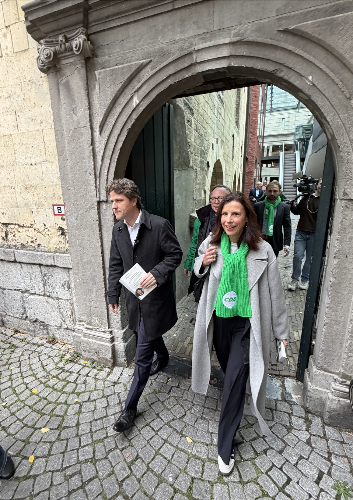 De lokale CDA-coryfeeën waren uiteraard ook aanwezig. Fractievoorzitster Gabriëlle Heine ging voorop. Gevolgd door wethouder Hubert Mackus, door Theo Bovens en door onder andere nummer 8 op de landelijke kieslijst Judith Buhler uit Sittard. Hij sprak ook met leden van de lokale lijst zoals Willem Schneider, die hem opwachtte bij de ingang van de Dominicanenkerk. "De jeugd wil het dak niet meer op", zei Schneider.