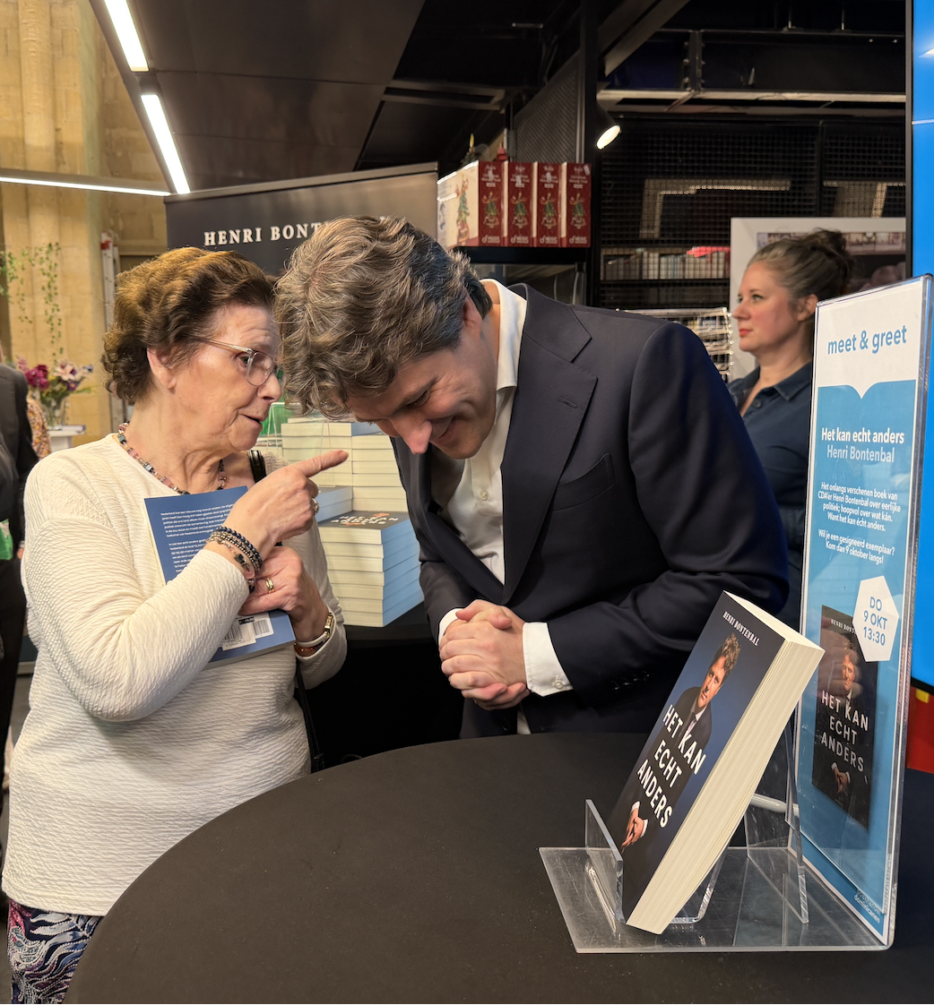 Henri Bontenbal van het CDA heeft donderdagmiddag een rondje Maastricht gedaan. Hij sprak met diverse ondernemers in de binnenstad en op de Markt, alvorens in boekhandel Dominicanen zijn eigen boek te signeren.