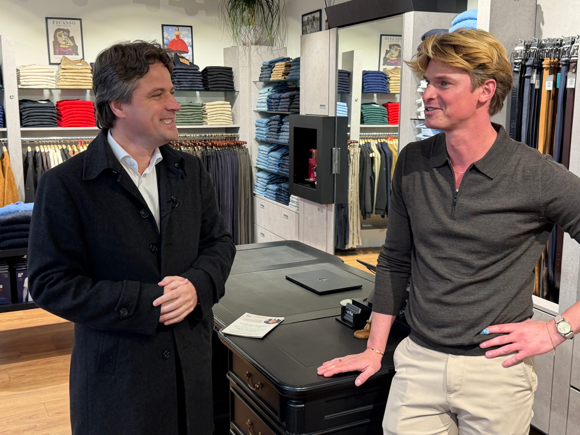 Bontenbal sprak met de ondernemers en hoorde diverse keren hoe lastig ze aan goed personeel kunnen komen. Bij Maurice en Mireille Custers van Basta at hij een broodje. Jurriaan Winckers vertelde Bontenbal over de 140-jarige historie van de zaak. "Het is moeilijk om juist wat ouder personeel te vinden." Bontenbal hoorde herenmode-specialist Jasper van Hugten vertellen over zijn corona-lessen. Maar ook over de sociale functie van de winkel. "Op zaterdag komt hier geregeld een meneer van 92 jaar die zich voor de deur laat afzetten. Hij gaat dan op die stoel zitten, en ik zoek jasje, hemd en pantalon voor hem uit. Ik help hem met uitkleden en aankleden bij het passen. Hij gaat graag goed gesoigneerd door het leven." Bontenbal luisterde aandachtig. En bekende rap dat hij 's ochtends snel wat kleren uit de kast had getrokken. Zijn outfit kon er nog prima mee door, zei Van Hugten, die zelf lijstduwer is bij het lokale CDA.