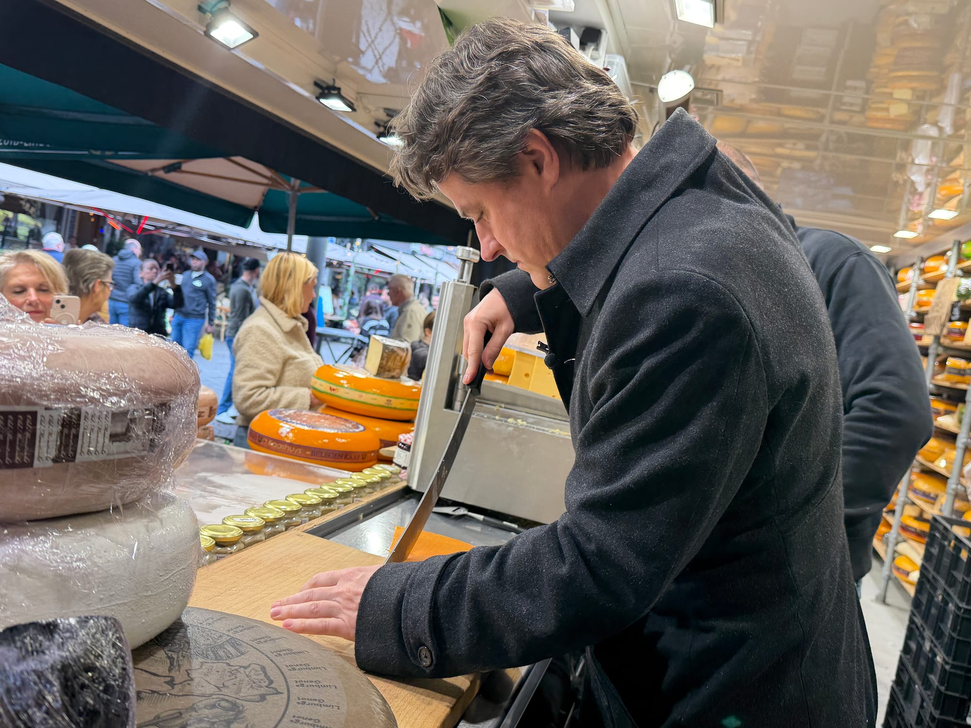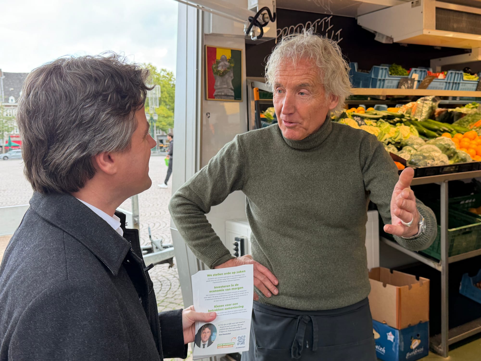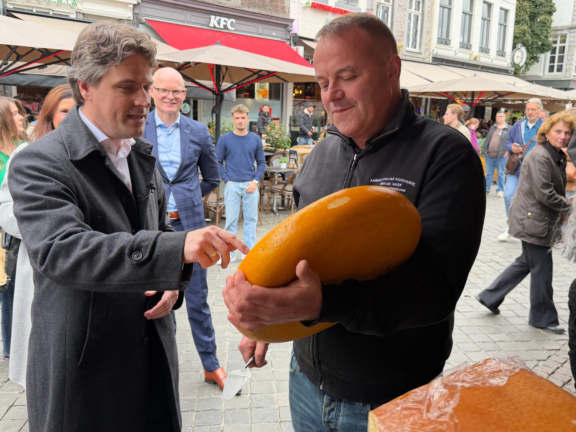 Op de Markt proefde Bontenbal bij kaasboer Mitchel Saur een in de grotten gerijpt stukje kaas en liet hij zich overhalen om het grote mes te pakken om te laten zien dat hij niet alleen van de kaasschaaf-methode is. Een paar kramen verder smaakte de druiven van Chris Meijer Scharis zoet. Zeker toen Bontenbal vernam dat ook deze ondernemer op de lokale lijst van het CDA staat.