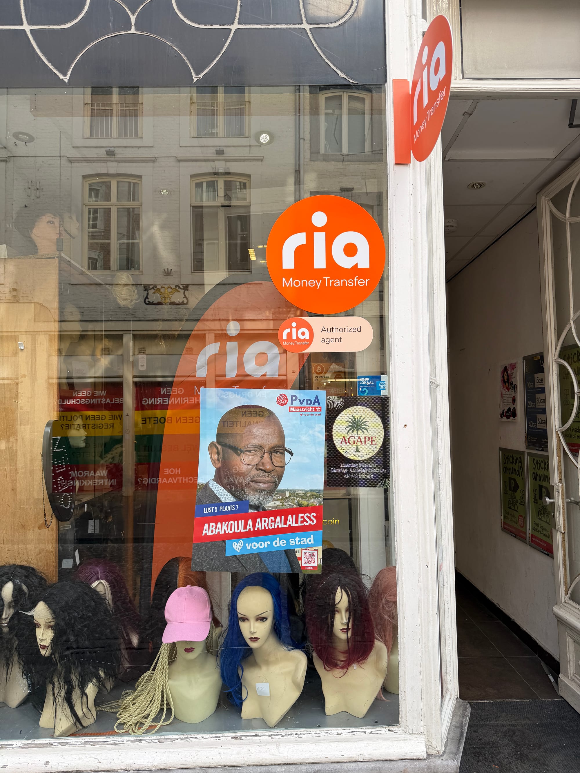 Het is het beeld dat precies past bij de logica van een 'etnische winkelstraat'. Die logica is dat mensen uit bijvoorbeeld Afrika alles bij elkaar hebben. Wie naar de Afro-kapper gaat, kan er ook boodschappen doen, naar een belwinkel om te bellen naar het buitenland, via een money transfer-winkel geld overmaken naar Afrika of een pakketje versturen, en wie zin heeft in een joint kan er op meerdere plekken terecht. Bij diverse Afro-winkels hangt de verkiezingsposter op van Abakoula Argalaless. Hij heeft plek 7 op de kandidatenlijst van de PvdA en hoopt op steun uit de Afrikaanse gemeenschap.