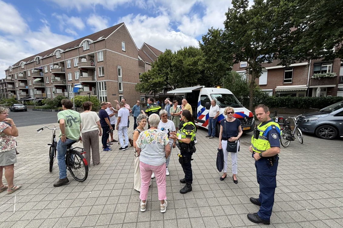 De politie, handhaving en gemeenteambtenaren van openbare orde waren vrijdagmiddag paraat op het Lakenweversplein. Showing the force nadat De Nieuwe Ster donderdag berichtte over nachtelijke terreur op het plein door groepen jongeren die op scooters door de wijk scheuren, er schreeuwen, urineren, drugs gebruiken, bewoners intimideren en zaken vernielen. De