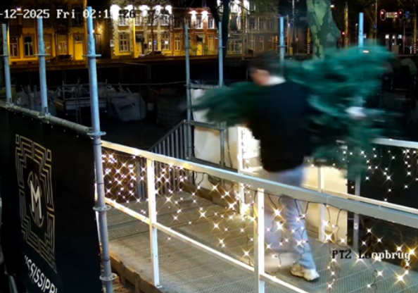 Uit frustratie dat de bekende coffeeshop Mississippi al gesloten was nam een dronken jongeman de kerstboom die bij de ingang stond mee. Mississippi zette de beelden online.