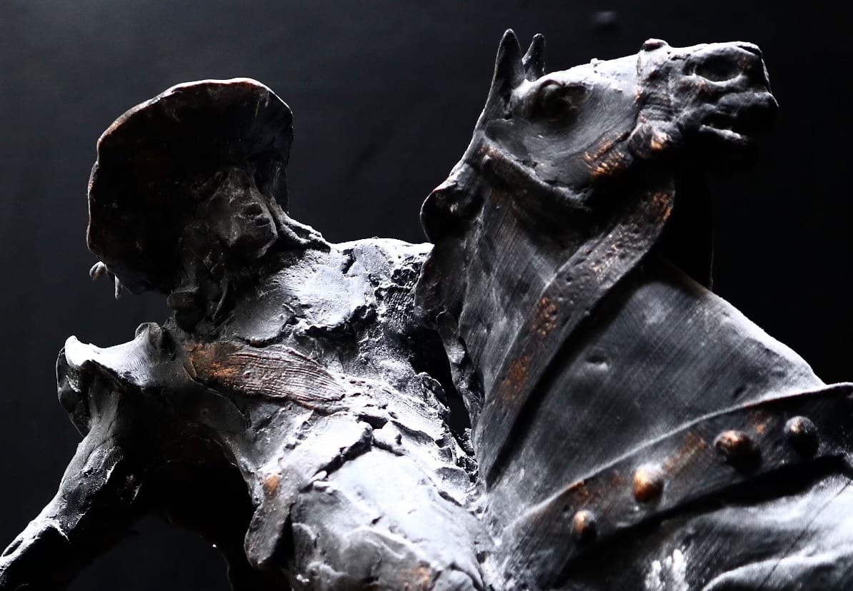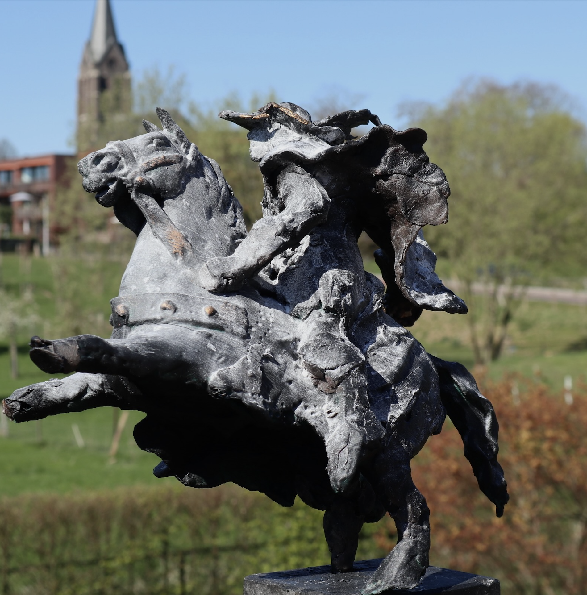 "Iech höb um veerdig, noe afwachte of de kneuk ech vaan heum zien, es dat zoe is weurt ur in broons gegoote." Kunstenaar Wil van der Laan heeft een eerste model gemaakt van D'Artagnan. Inmiddels is er al belangstelling voor het beeld, hier te zien met uitzicht op de kerk van Wolder.