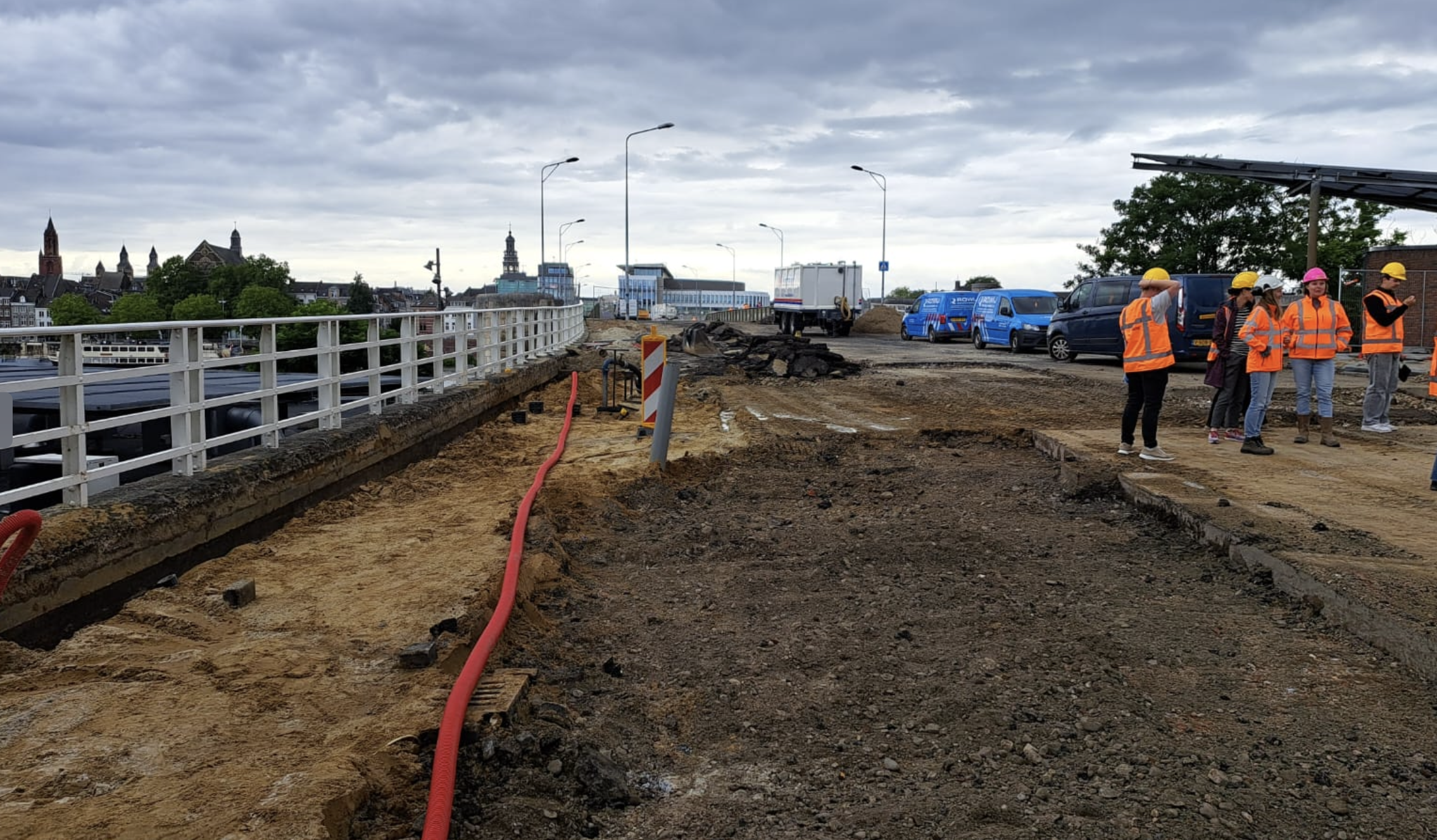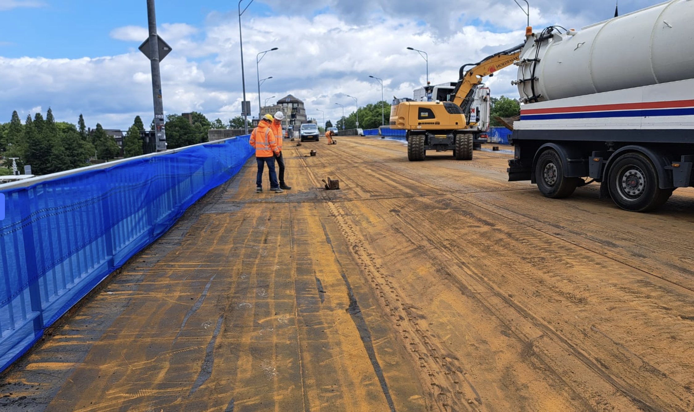 In het project werken Rijkswaterstaat, gemeente en de aannemer Heijmans dan ook nauw samen. Dagelijks zijn er zo'n 25 mensen aan de slag. Vorige week tijdens de tropische dagen in Maastricht, is alleen tot het middaguur gewerkt. Het werd te heet op het staal.