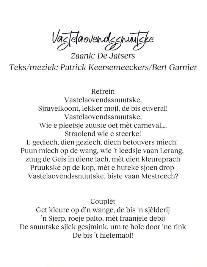 De Jatsers hebben met het nummer Vastelaovendssnuutske het Mestreechter Vastelaovendsleedsjes Konkoer gewonnen. Ze volgen daarmee Duo X-Elle op dat vorige jaar met 't Vastelaovendsleedsje tot beste Maastrichtse carnavalsnummer werd gekroond. Patrick Keersemeeckers en Bert Garnier schreven de tekst en muziek voor Vastelaovendssnuutske