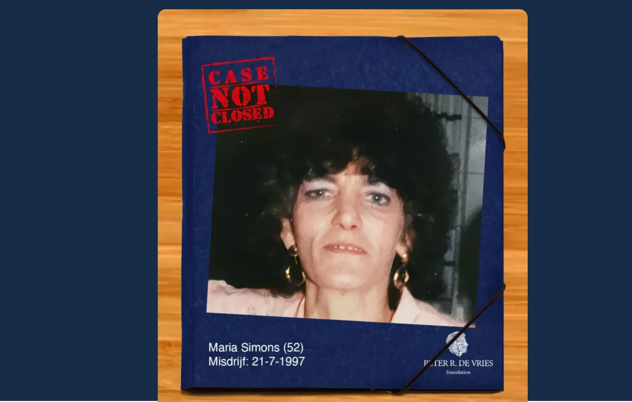 De Peter R. De Vries Foundation vraagt deze week aandacht voor de moord op Maria Simons in Maastricht. Die moord vond 27 jaar geleden plaats in de Widelanken.