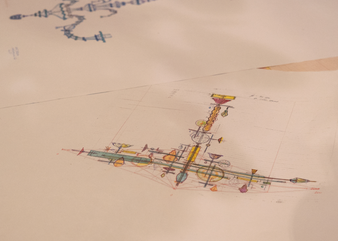 Zijn atelier is tevens expositieruimte en werkplaats. Overal staan kasten met lades. "Trek maar eens een la open," zegt Pascal. Welke la je ook opentrekt overal vind je eeuwenoude bergkristallen ornamenten, bronzen versieringen of onderdelen van kandelaars. Duizenden onderdelen moeten er liggen. Pascal: "Ik ben voortdurend op zoek naar materiaal voor mijn eigen kunstwerken en voor de restauratie van kandelaars. Dat betekent zoeken op internet, bij kunsthandelaren of op markten in heel Europa. Wat hier ligt heb ik de afgelopen twintig jaar verzameld."