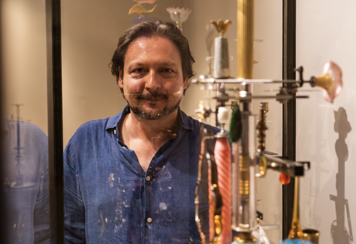 De 53-jarige Mestrom is kunstenaar en restaurateur van oude kroonluchters, maar timmert de laatste jaren vooral aan de weg met zijn bijzondere sculpturen die hij minutieus opbouwt uit eeuwenoude ornamenten die ooit onderdeel waren van kroonluchters. Zijn sculpturen vind je over de hele wereld.