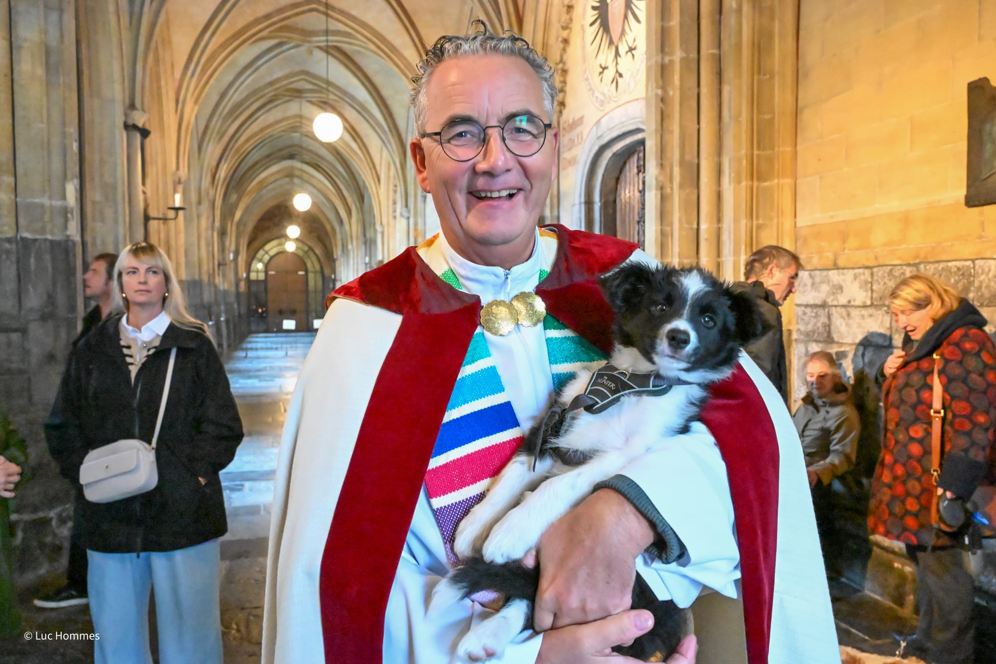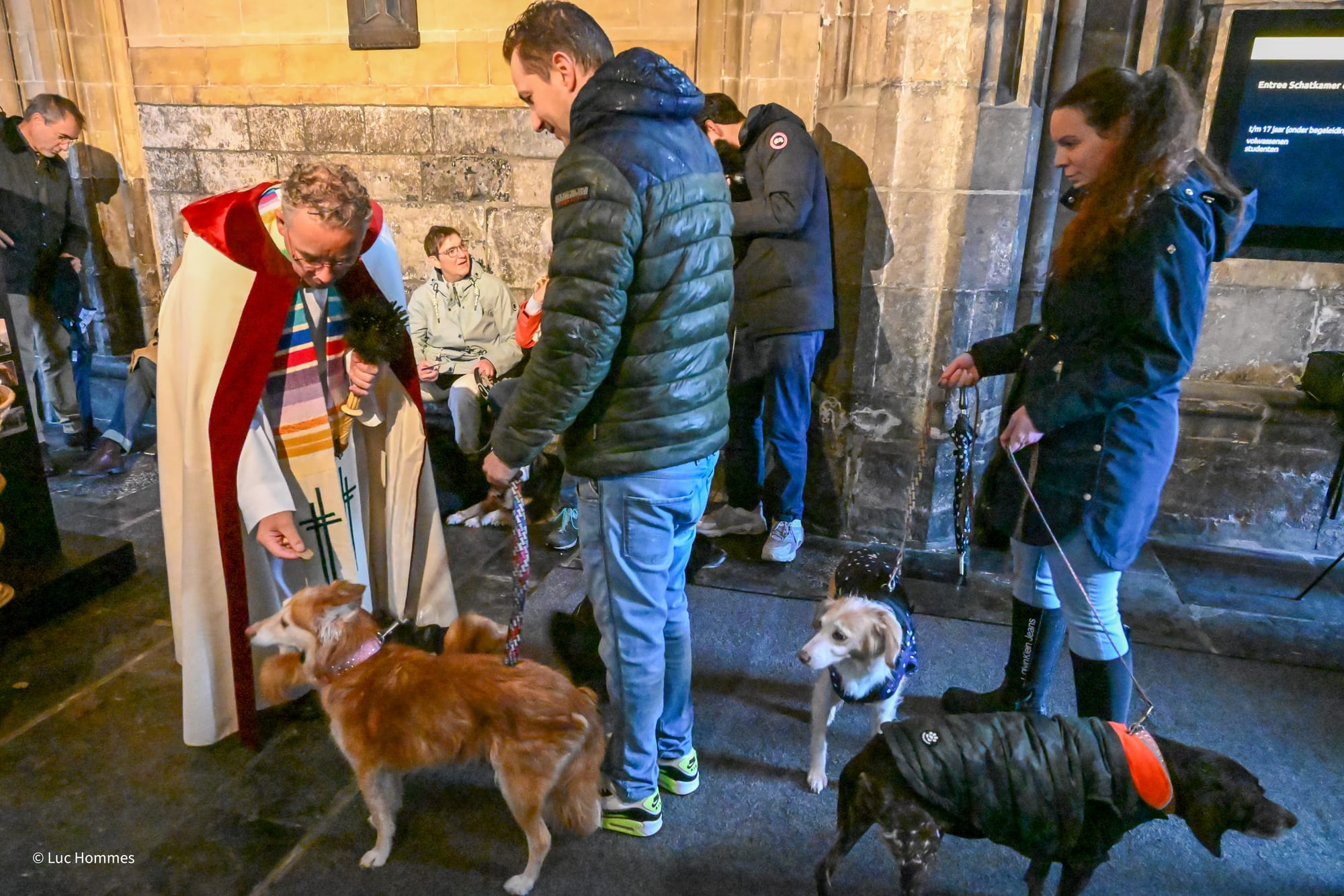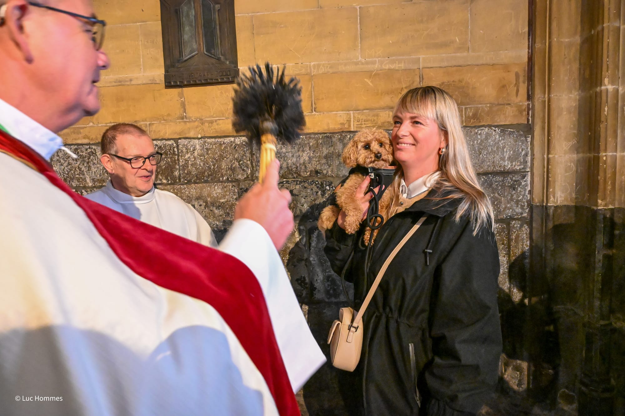 In de Pandtuin van de Sint Servaasbasiliek werden zaterdagmorgen de huisdieren gezegend. Niet alleen huisdieren en hun baasjes waren welkom, maar ook de dierenknuffels kregen de zegen van deken Dautzenberg. Een fotoreportage van Luc Hommes.