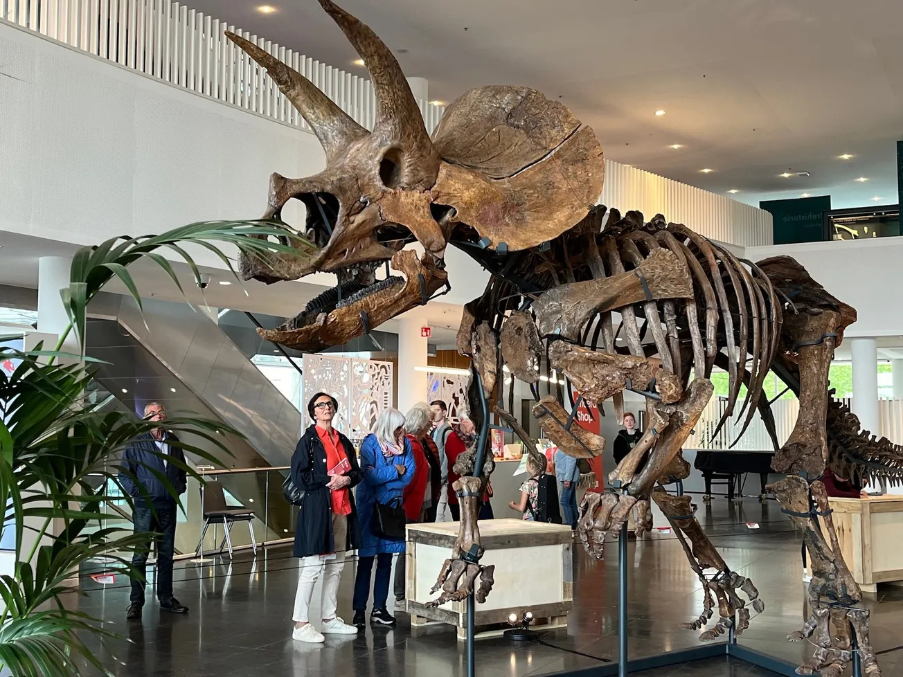 Na twee dagen bouwen in Centre Céramique staat de 67 miljoen jaar oude Triceratops op zijn eigen poten en is hij te zien voor het publiek. Het skelet van de dinosaurus kwam afgelopen maandag aan in Maastricht.