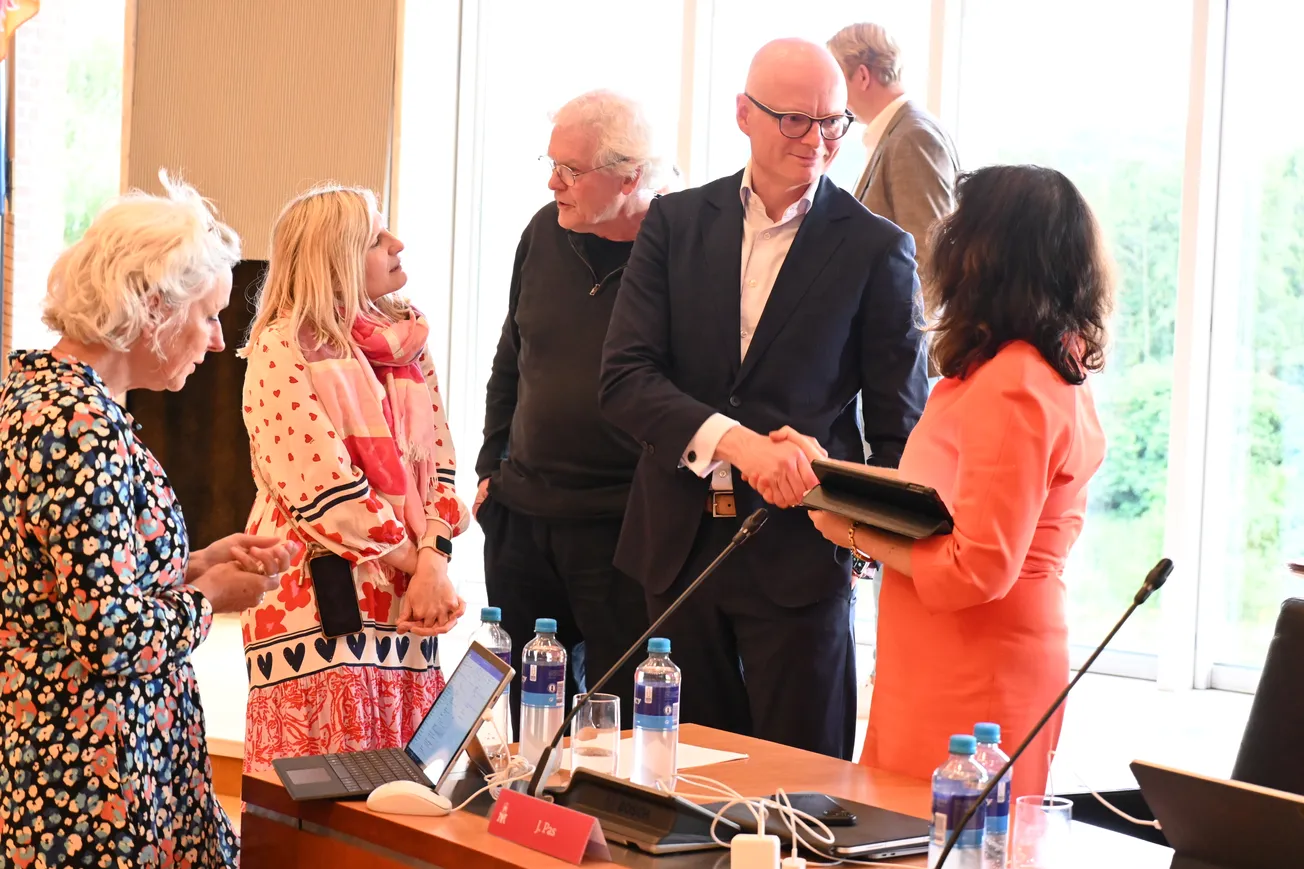 In het CAO-conflict rond het Geusseltbad is er een doorbraak bereikt na een lange avond politiek onderhandelen. Die scherpe onderhandelingen werden met een ferme handdruk tussen de hoofdrolspelers wethouder Hubert Mackus en raadslid Kitty Nuyts bezegeld.