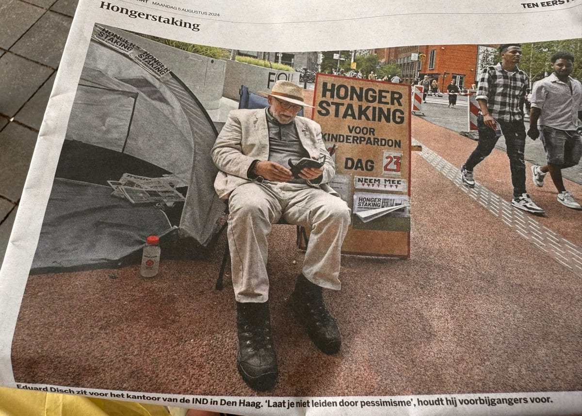 Misschien wel de meest bekende actievoerder van Maastricht: Eduard Disch (79). Wekenlang op de stoep van het ministerie van Buitenlandse Zaken in hongerstaking om de aandacht te vestigen op kinderen van asielzoekers die met uitzetting worden bedreigd. In Maastricht bij elke demonstratie voor Gaza en voor de Palestijnen nadrukkelijk aanwezig, meestal altijd ook als een van de sprekers en dan vaak geëmotioneerd een betoog houdend. Altijd in de weer voor dak- en thuislozen.