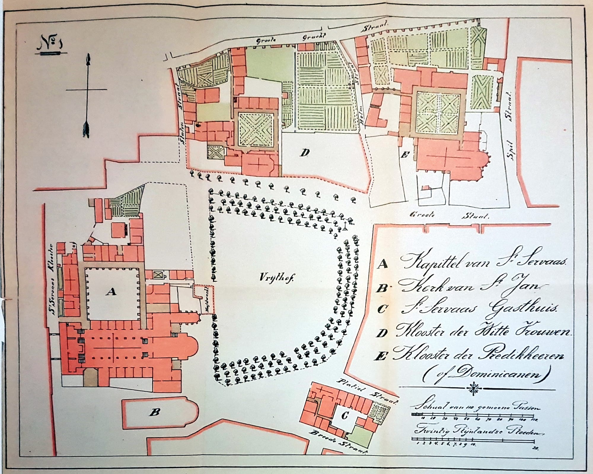 Of notarissen per se een plekje hadden dienen te krijgen in de wandelgids van Jan Smits, dat durf ik niet te zeggen. Maar hoe leuk zou het zijn als een Maastrichtse notariële wandelgids zou verschijnen? Als je de volgende keer bij Boekhandel Dominicanen naar binnen stapt, dan zou je bijvoorbeeld dankzij zo’n gids kunnen ontdekken dat in 1755 de Maastrichtse koopmannen Peter Reniers en Joannes Silverijser via de notaris ieder 3.000 gulden betaalden aan het Dominicanenklooster, zodat hun zonen Andreas Reniers en Franciscus Silverijser konden intreden in het klooster. In datzelfde klooster woonde in 1794 een zoon van Gijsela Thiessens, weduwe van de koopman Leonard Schrammen. De stad Maastricht werd op dat moment belegerd door de troepen van de kersverse Franse Republiek. Gijsela maakte zich zorgen dat haar zoon door de Franse veroveraars uit zijn klooster gezet zou worden, en om die reden regelde ze bij de notaris dat haar andere kinderen in een dergelijke situatie in de toekomst financieel moesten zorgen voor haar zoon. Haar bezorgdheid zou werkelijkheid worden.