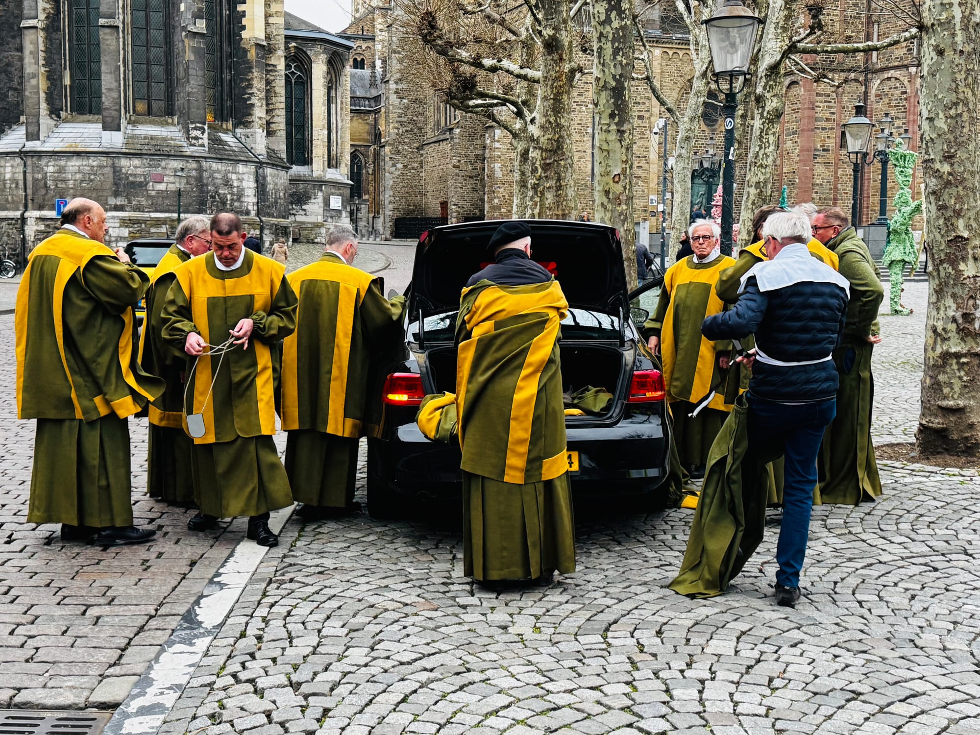 ‘Opmerkelijk,’ meent Bovens, ’is de confrontatie met de toeschouwers, veelal passanten, toeristen of mensen op terrassen. Hier ontmoeten twee werelden elkaar: de religieuze en de seculiere. Maar ook hier weer: ik zie het als een brug. En daar doen we het voor. Steeds weer die brug bouwen.’