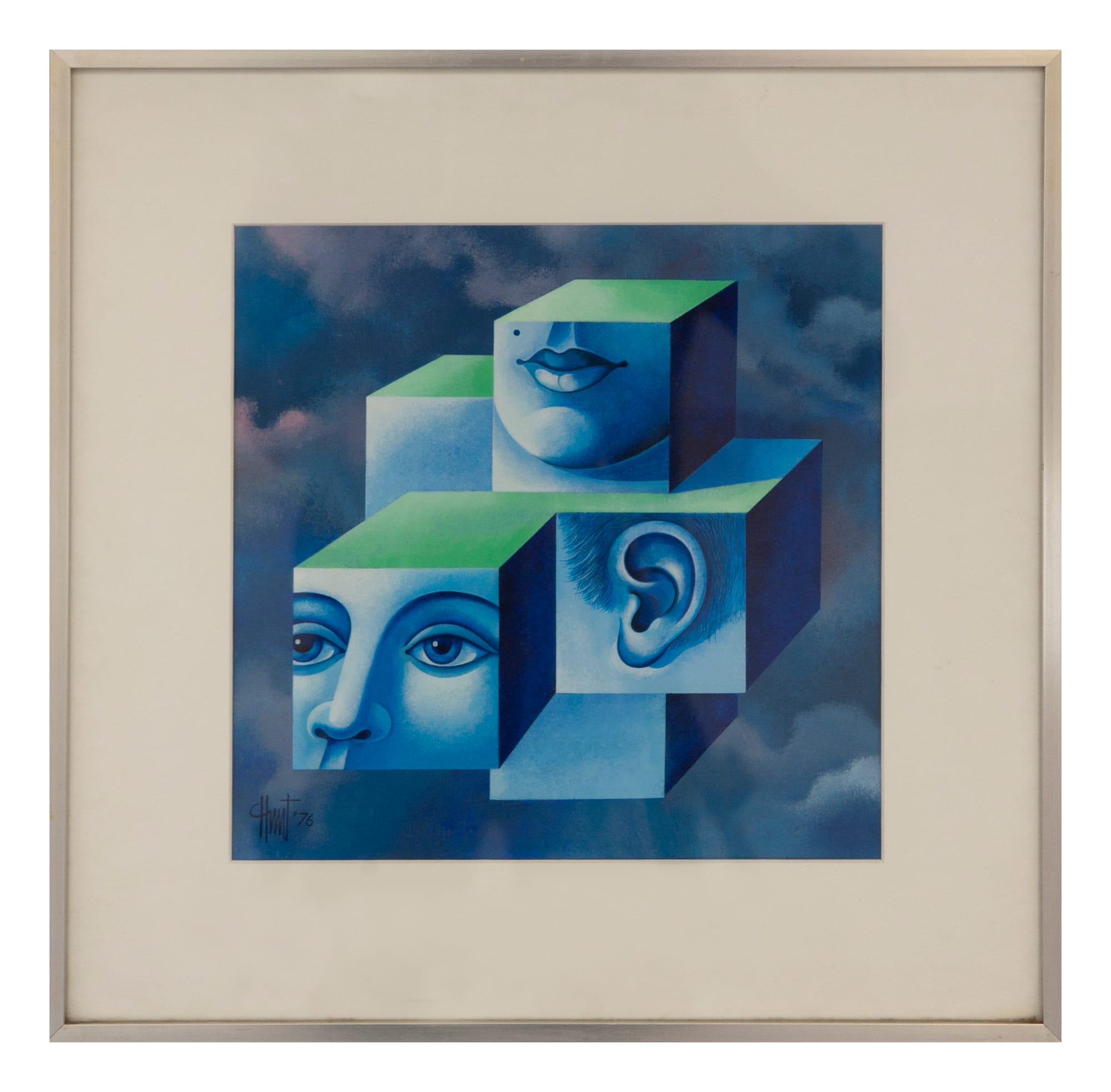 Naast zijn cartoons werkte Huntjens als grafisch ontwerper, illustrator, glaskunstenaar, designer en schilder. Hij ontwierp onder meer boekomslagen, huisstijlen, glas-in-loodramen en logo’s. Zijn schilderijen, sterk beïnvloed door het surrealisme, vormen het hart van deze tentoonstelling. Hierin komen zijn grafische precisie, humor en verbeeldingskracht samen.