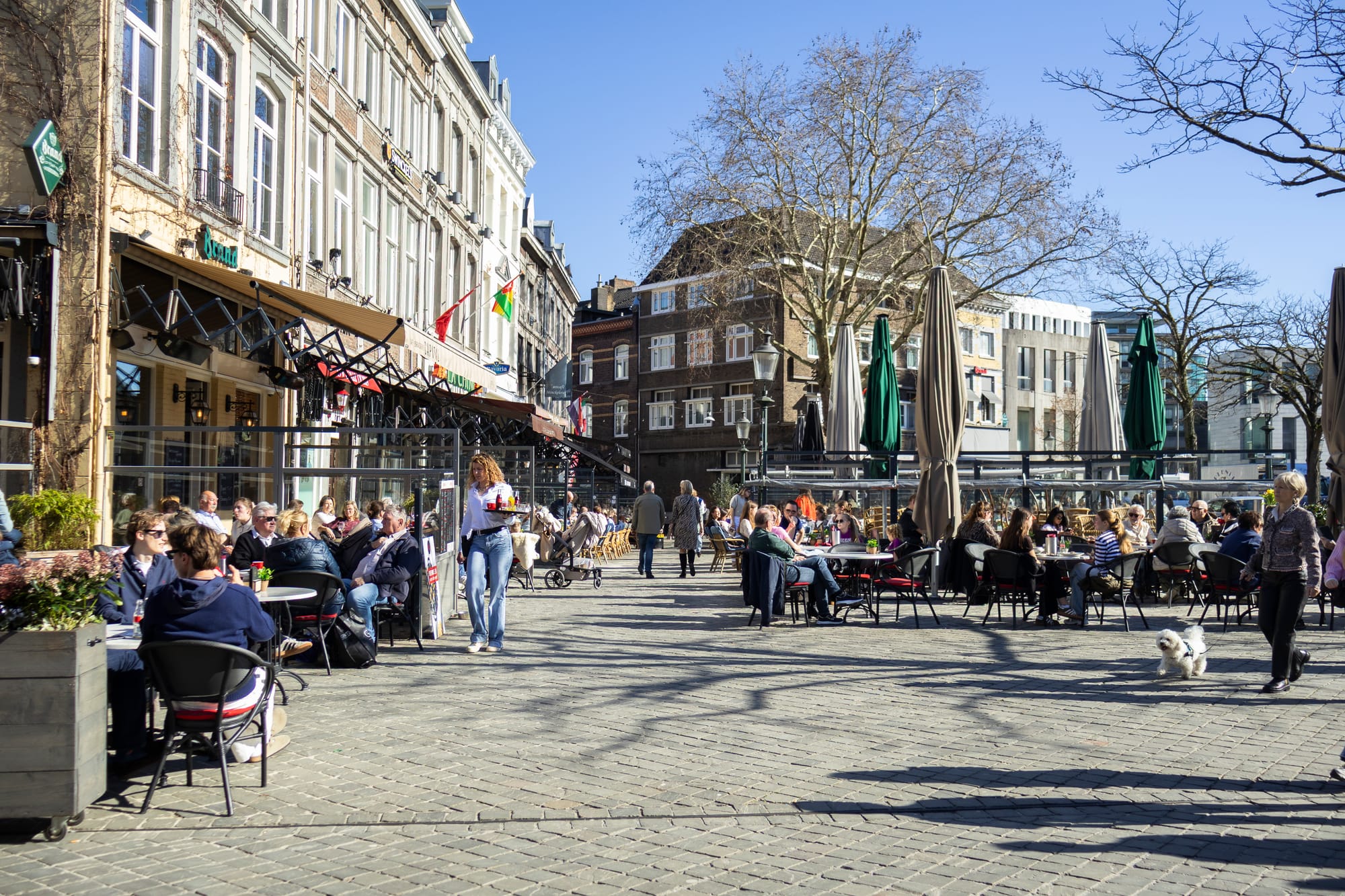Het noorden van Nederland geniet van de voorjaarsvakantie. En Maastricht is favoriet als bestemming voor de toeristen uit de Randstad. Drukte dus in de stad, waar de zon scheen en de terrasjes vol waren.