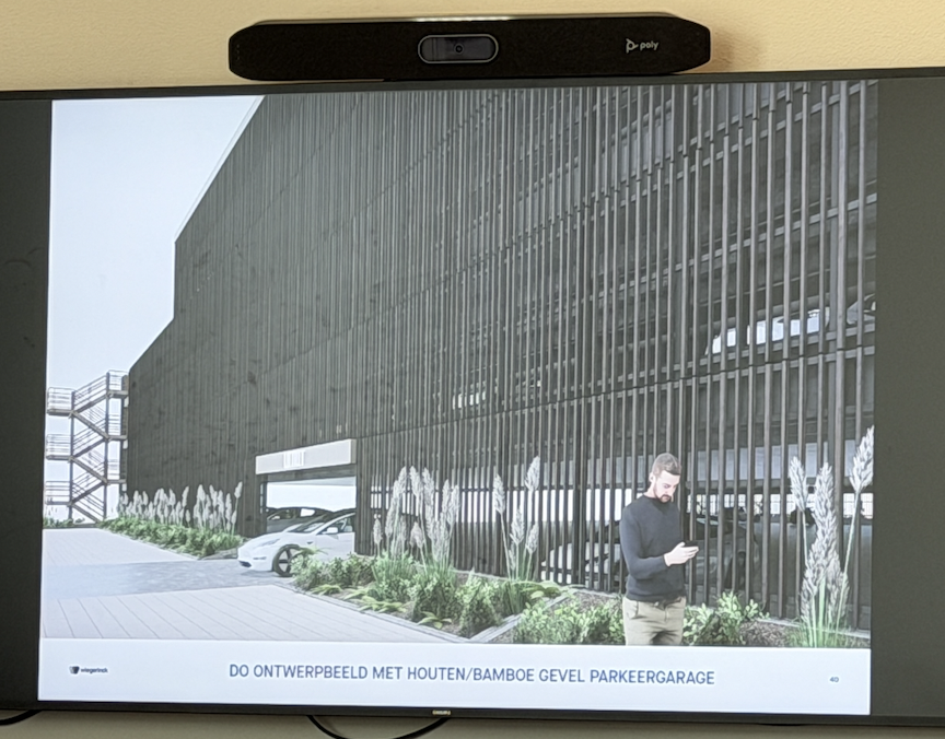 Feron vroeg wel nog of de parkeergarage niet met groen is in te pakken. Kun je geen stalen draden maken waarlangs het groen kan klimmen. Misschien zit dat wel nog in het budget." Hij maakte zich net als andere leden wel zorgen om de inschijning van de koplampen van parkerende auto's in het nieuwe entreegebouw dat er pal naast komt te liggen. Het ziekenhuis gaf aan zich al bewust te zijn van dat mogelijke probleem. "Bij de spoedeisende hulp hebben we een haag geplant."