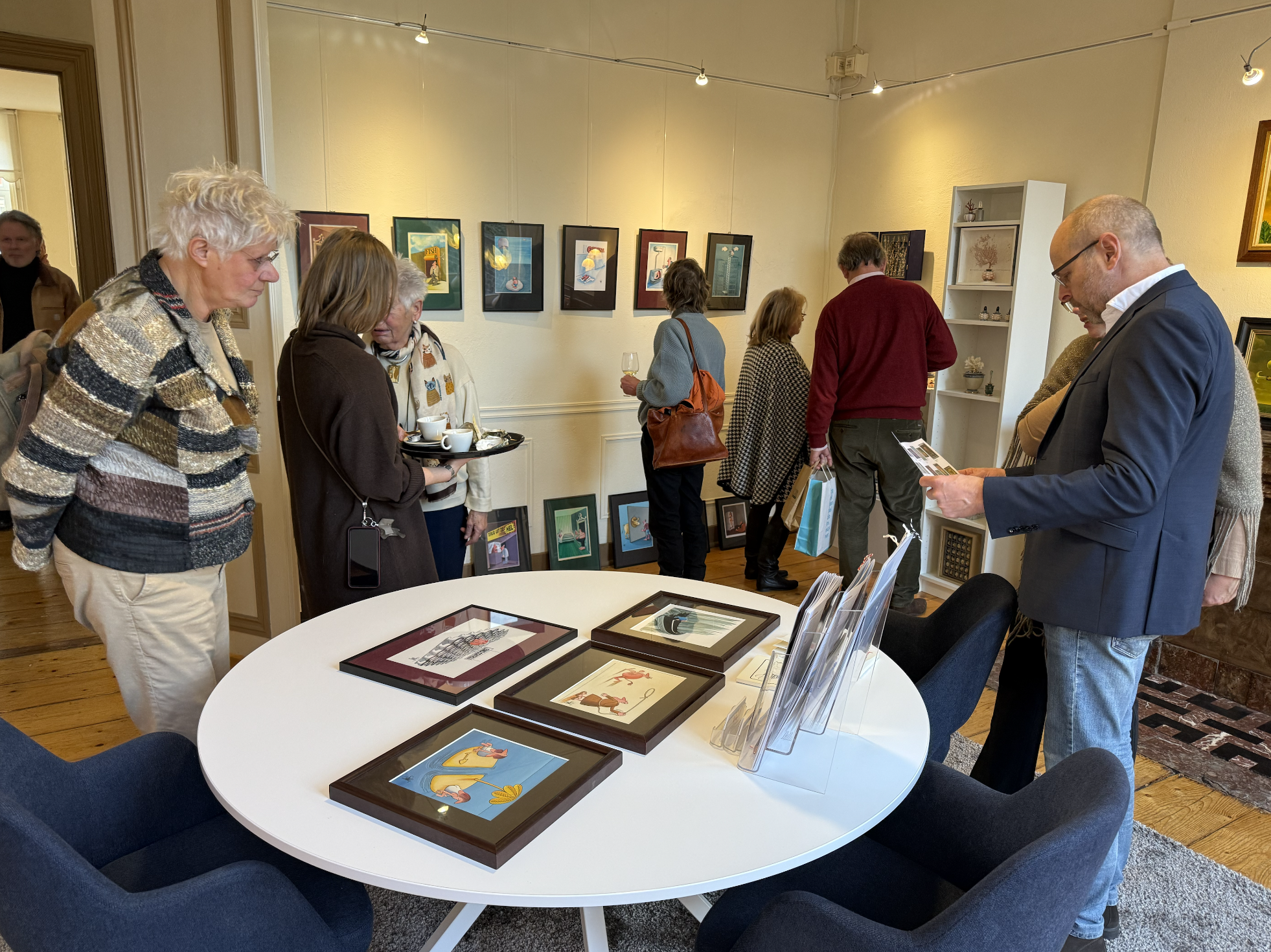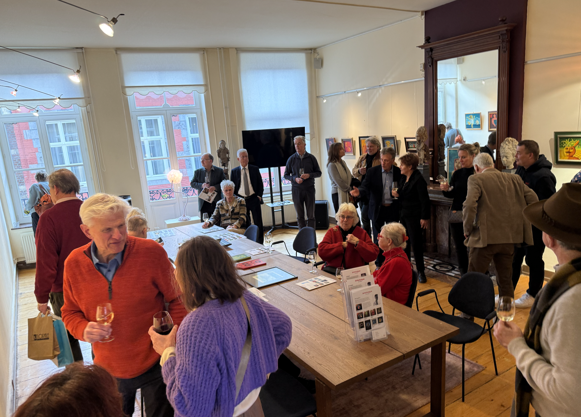 De belangstelling voor de opening was groot, zoals zichtbaar in de foto's hieronder. Veel bezoekers kwamen speciaal naar Artichoque om het werk van Huntjens te zien. Het openingswoord werd verzorgd door Willem Vermeer, een neef van de kunstenaar.