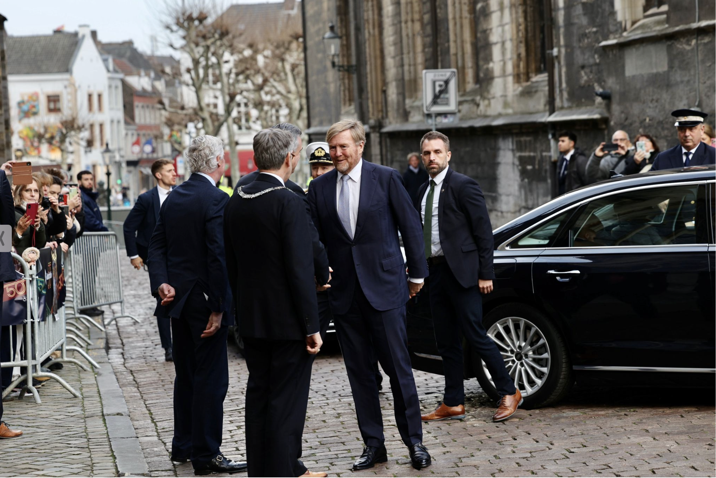 Formateur Rianne Letschert, die nu Willem Alexander in Maastricht ontvangt en naar alle waarschijnlijkheid over een paar dagen of weken zelf op het bordes van de koning staat in de nieuwe ministersploeg van het kabinet Jetten-I. Het kan verkeren. Jean-Pierre Geusens maakte deze historische plaat. Over vijftig jaar kan - nu nog prinses - Amalia tegen de achtergrond van deze foto haar handtekening zetten. Een moderne variant van het Droste-effect.