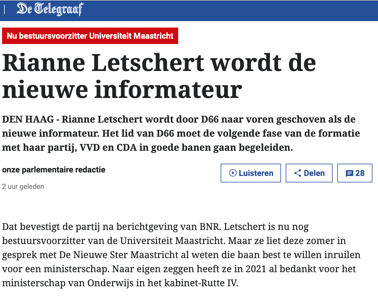 Zoals jullie weten is De Nieuwe Ster een krant voor en over Maastricht. Maar zo heel af en toe halen we ook het landelijk nieuws. Met dank aan de Telegraaf. Waar andere media in het Maastrichtse De Nieuwe Ster zien als Voldemort oftewel Hij-Die-Niet-Genoemd-Mag-Worden, gaf de Telegraaf de credits wel aan De Nieuwe Ster. Met recht mogen we ons nu 't Telegraefke noemen.