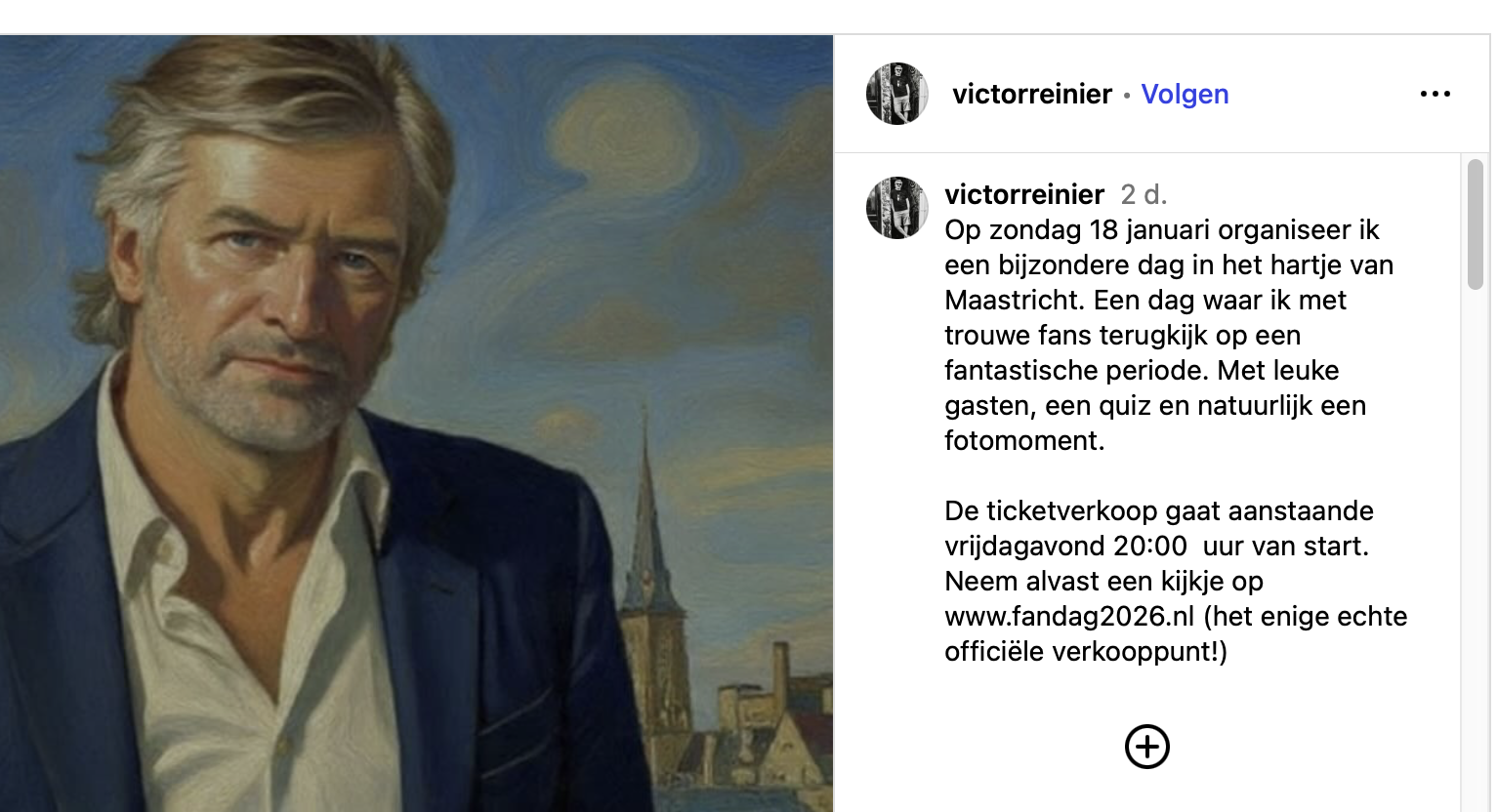 Wie geen last van te weinig belangstelling zal hebben, is Victor Reinier. Hij organiseert op zondag 18 januari in de Rebelle in Maastricht een heuse fandag. Een entreekaartje kost zeven euro en daar krijg je ook nog eens twee consumpties voor. "Een dag waar ik met trouwe fans terugkijk op een fantastische periode. Met leuke gasten, een quiz en natuurlijk een fotomoment", schrijft de acteur op een speciaal voor deze dag gemaakt website. Misschien had Reinier de fandag beter In de Lanscroon kunnen houden, dan hadden ze daar gelijk genoeg kijkers.