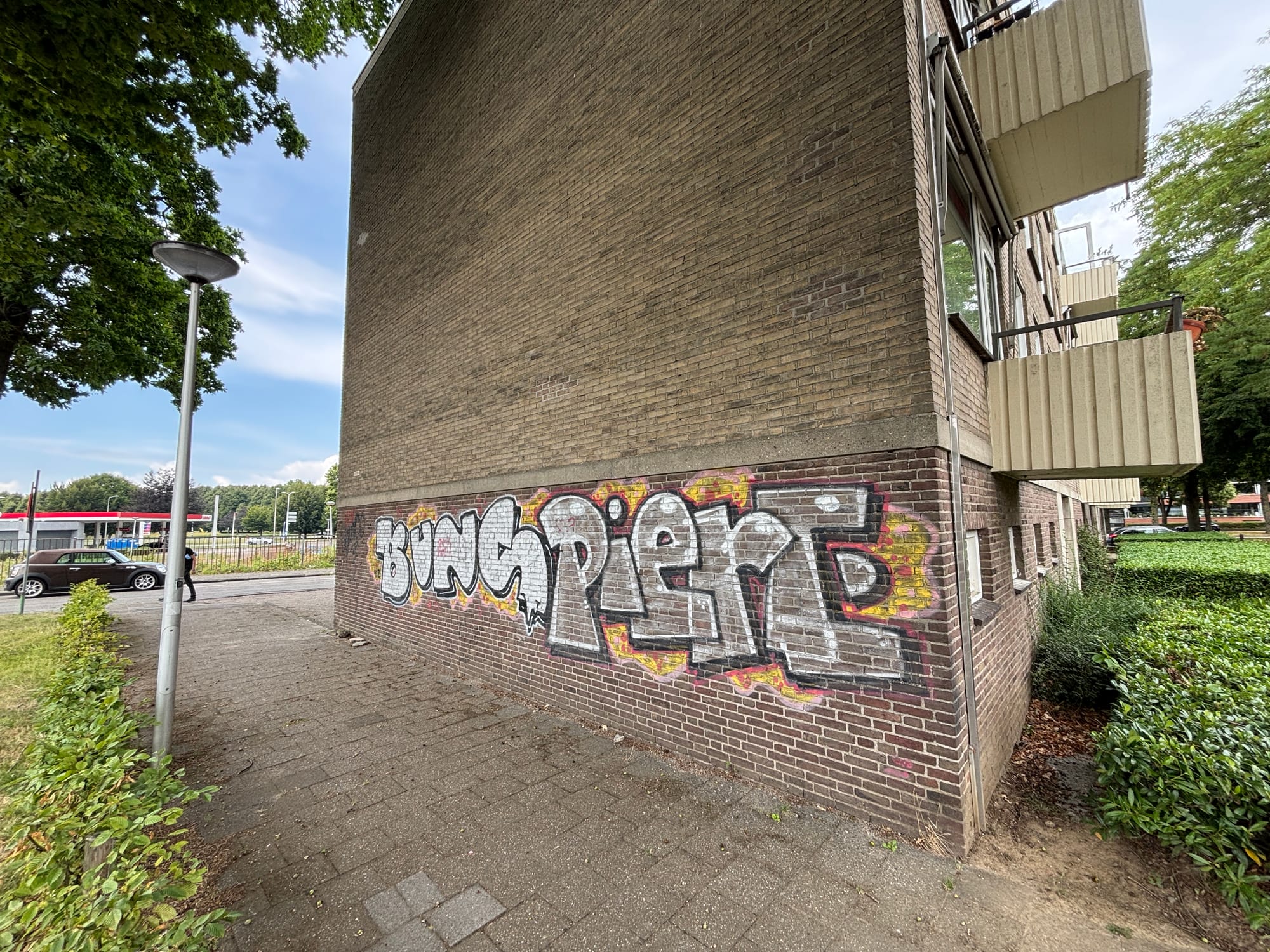 Lezers tipten ons dat de graffiti lijkt op te rukken in Maastricht-West, in de straten in de buurt van de Brusselsepoort. We namen een kijkje en zagen één nieuwe en vooral wat oudere tekeningen. Een bewoner vertelde dat er wel overal camera's in het gebied hangen, maar dat de graffiti-spuiters daarop toch slecht te zien zijn. De elektriciteitscentrale is aan alle kanten ondergespoten.