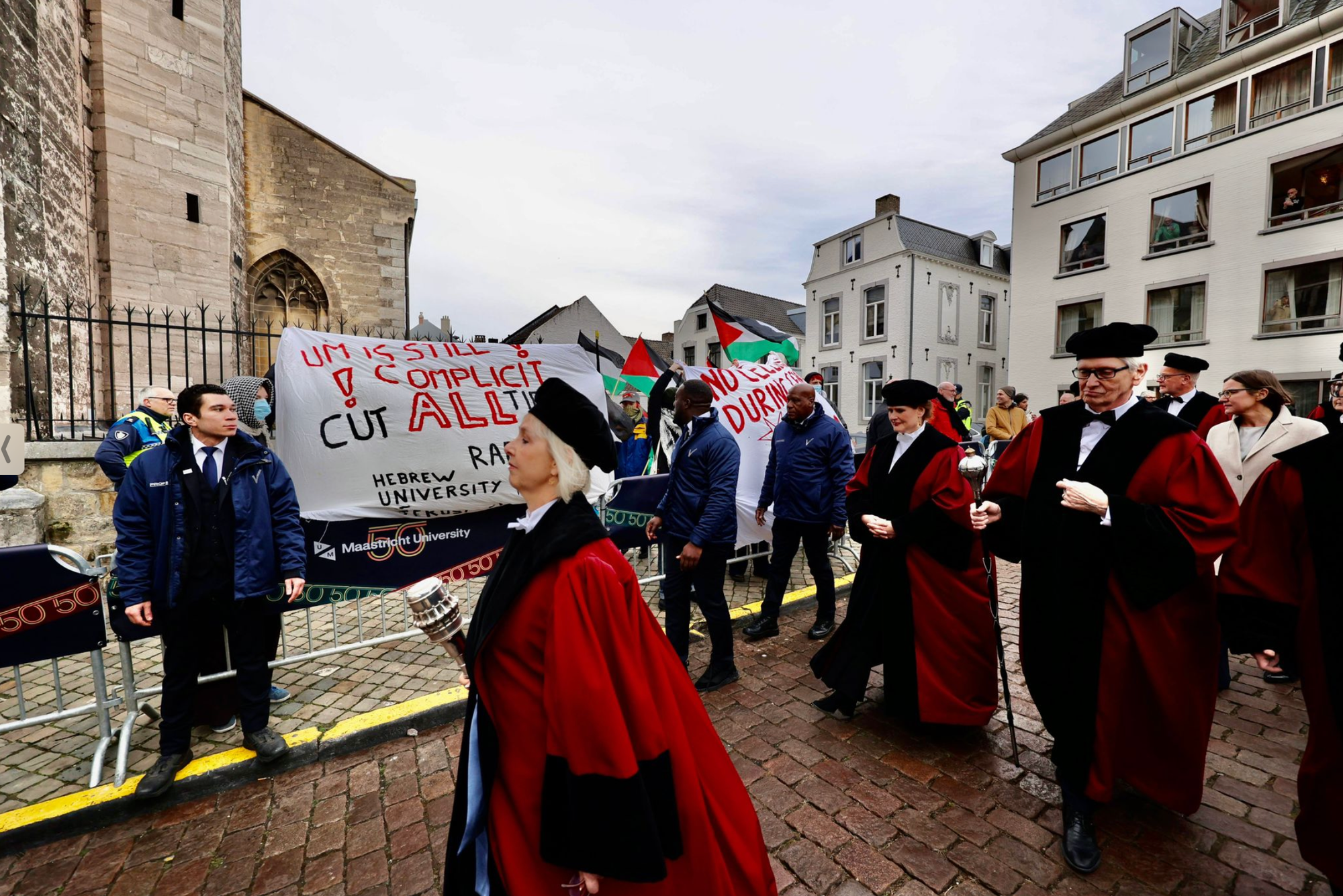 Een dag voor het bezoek van Koning Willem Alexander aan de Universiteit Maastricht staat de beveiliging op scherp na de bekladdingen van universiteitsgebouwen door pro-Palestina actievoerders. De gebouwen van de universiteit werden afgelopen nacht beklad met pro-Palestina leuzen. Het betreft zes gebouwen die met verf werden beklad. Het gaat om