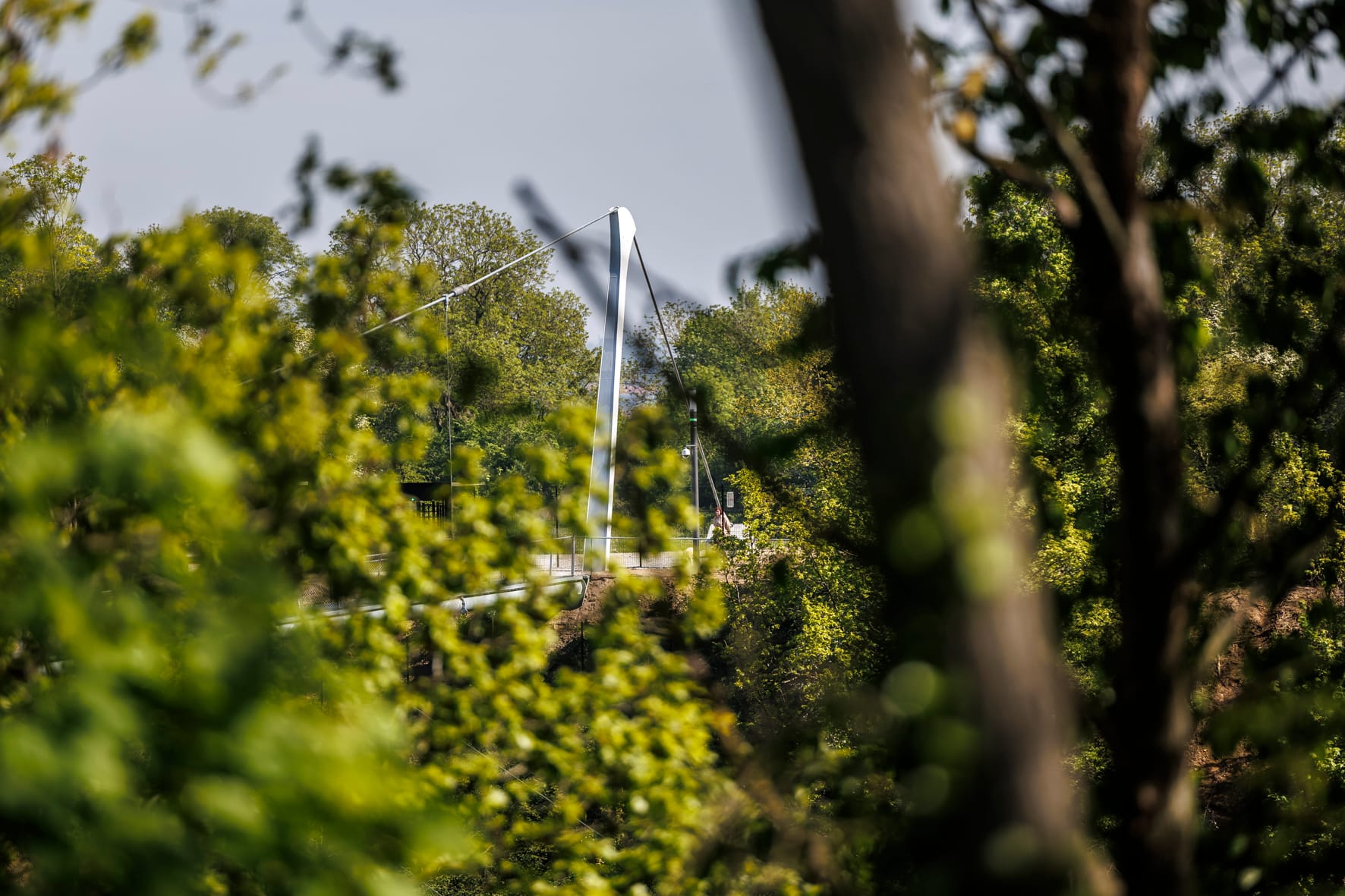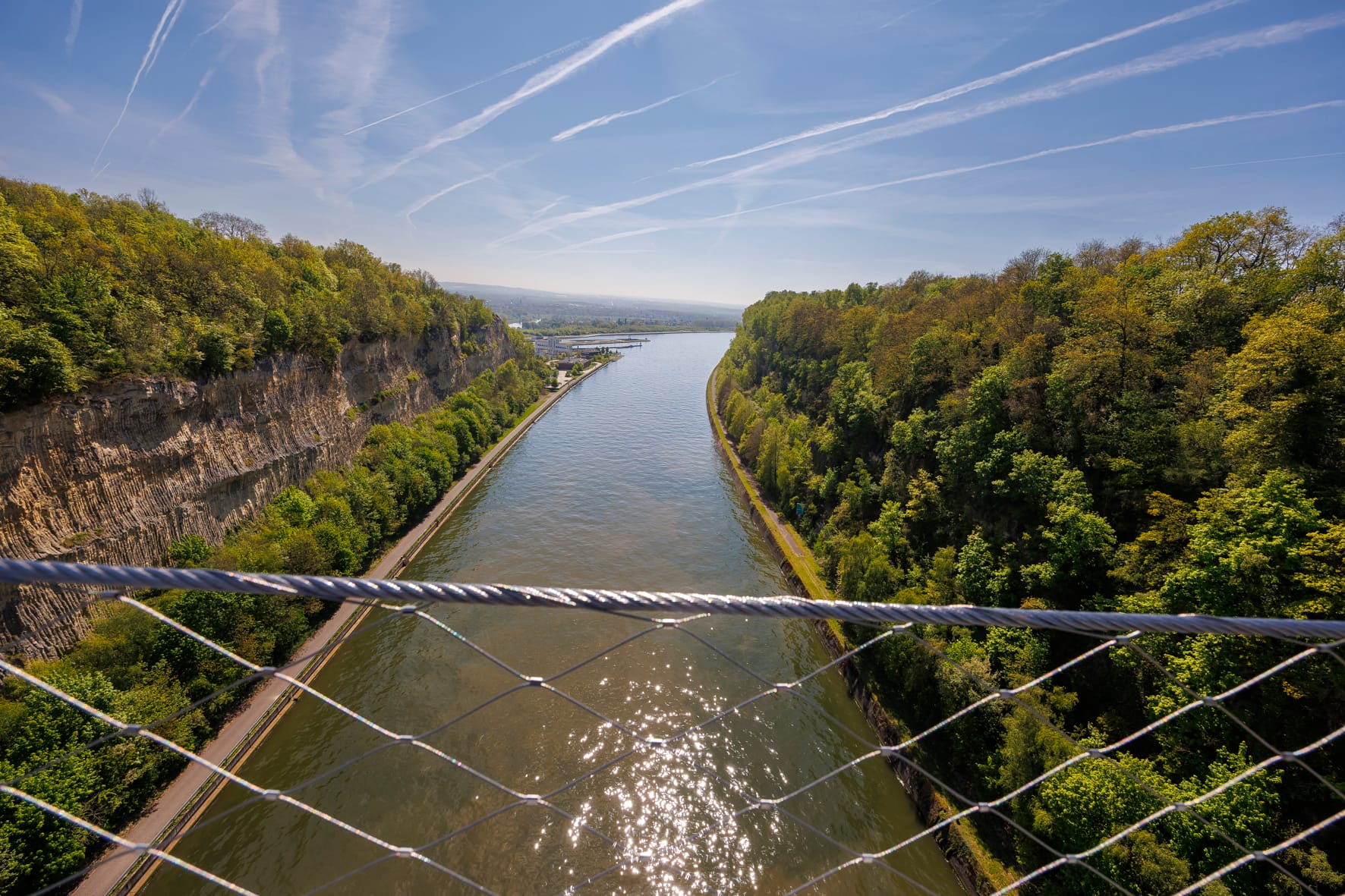 Het Albertkanaal bij Kanne op grote hoogte te voet oversteken kan sinds vrijdag door de opening van de Passerelle van Caestert, een 50 meter hoge wandelbrug, onderdeel van het Grenspark Jeker & Maas.