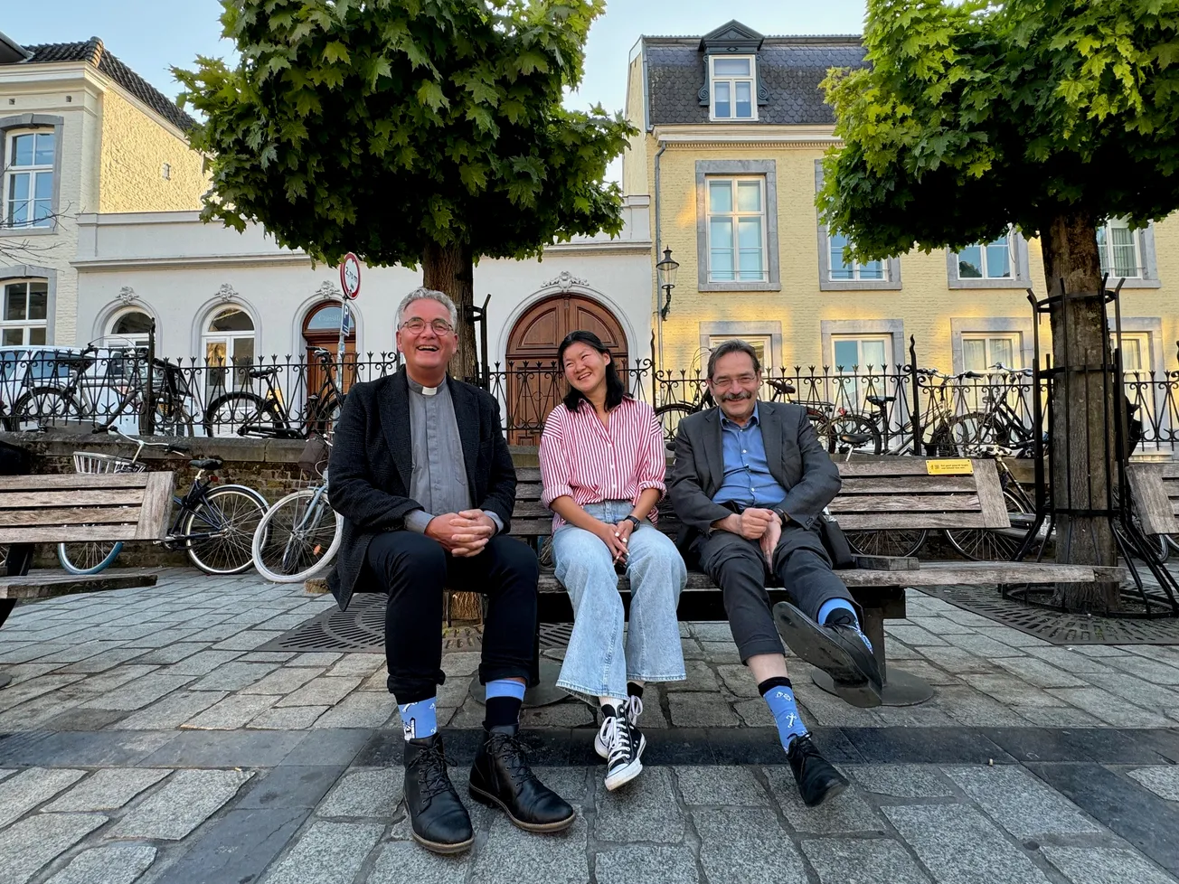 Deken John Dautzenberg en Theo Bovens, voorzitter van het Graf van Sint Servaas, ontvingen de eerste sokken uit handen van ontwerpster Iris Thijssen. De sokken werden uiteraard meteen gepast. "Ze zitten héérlijk", liet de deken weten. "Alsof je op wolken loopt en dat zelfs in mijn maat, maat 46."