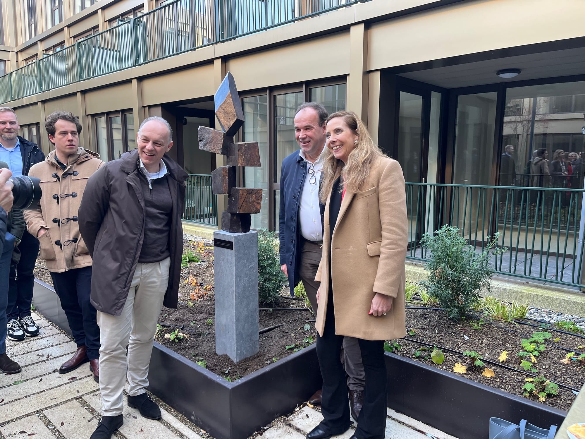 Een feestelijk moment donderdag in de binnentuin van het nieuwe appartementencomplex In de Landscroon in het voormalig V&D-gebouw. De woningen zijn opgeleverd, maar huurders staan nog niet in de rij.