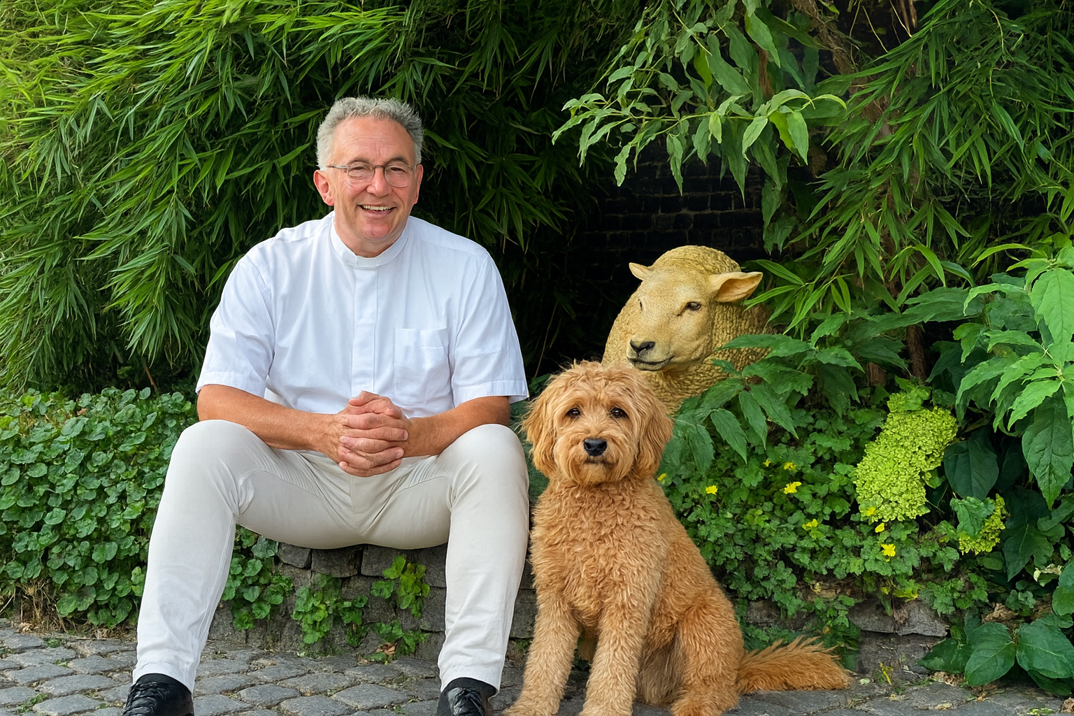 Ook kreeg ik een deze week een uitnodiging van Deken John Dautzenberg. Hij zegent op zaterdag 4 oktober (feestdag van de Heilige Franciscus én Werelddierendag) namelijk alle dieren in de Pandtuin van de Sint-Servaasbasiliek. Bij de uitnodiging zaten ook een aantal persfoto's van de Deken. Toen ik die zag was ik toch wel een tikkeltje teleurgesteld, want een collega viervoeter stond te 'shinen' naast de deken op de foto. Ik weet, ik ben niet de goedkoopste PR-hond van de stad, maar voor de Deken had ik dit fotoshoot-klusje wel pro deo willen doen.