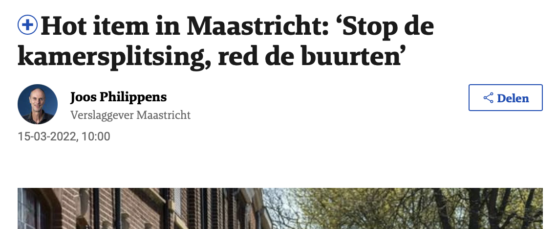 Verkamering van panden en het splitsen van panden ligt al jaren erg gevoelig in Maastricht. De gemeente voert beleid om te voorkomen dat in straten de balans doorslaat naar te veel studentenkamers.
