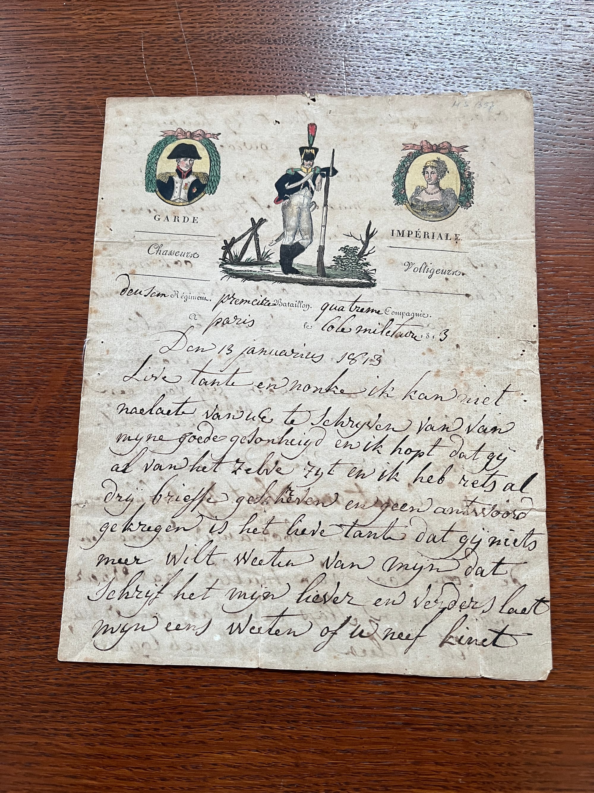 Truus vindt juist het werken bij HCL zeer interessant. “Limburg heeft namelijk heel veel internationale en daarmee interessante lijnen. De Staten-Generaal bestuurden vanuit Den Haag, de Spaanse Koning had hier invloed, net zoals Oostenrijk, de Duitse keizer en de prins-bisschop van Luik. Vanaf 1795 behoorde Limburg, op een paar kleine stukken na, bij Frankrijk. Omdat Limburg een Frans Departement was golden hier andere wetten dan in de rest van Nederland. Zo is de burgerlijke stand, die door de Fransen werd ingevoerd, de oudste van ons land. Dat gold ook voor de militaire dienstplicht. Limburgse en dus ook Maastrichtse jongeren waren de ‘nieuwe Fransen’ en moesten met Napoleon naar Italië, Spanje en zelfs Rusland ten strijde trekken.” Truus laat een brief zien uit 1813 die Mathias Banens, een Maastrichtse jongen, vanuit Parijs schreef aan zijn tante in Maastricht. Hij volgde de opleiding scherpschutter en liet onder meer weten dat hij in afwachting was van zijn ‘uitzending’ naar Rusland. “Kun je je dat voorstellen”, zegt Truus. “Deze jongen heeft Napoleon in levenden lijve gezien. Dat is toch fascinerend.”