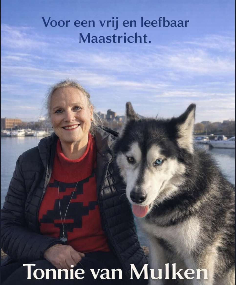 En wie alle stemwijzers en kieskompassen invult, heeft het al gezien. De hondenbelasting zal ergens na 18 maart wel sneuvelen. En dat is in elk geval goed nieuws voor Tonnie van Mulken. Samen met haar Siberische husky Loeka staat ze op de campagneposter voor de Liberale Partij Maastricht. Voor één stem krijg je dus twee waakhonden van de lokale democratie. Ook als de temperatuur in de raadszaal weer eens tot ver onder het vriespunt daalt. En voor wie denkt dat-ie nog last heeft van carnaval, nee: deze husky's hebben twee verschillend gekleurde ogen. De Partij voor de Dieren wordt met deze poster wel een beetje publicitair overklast.