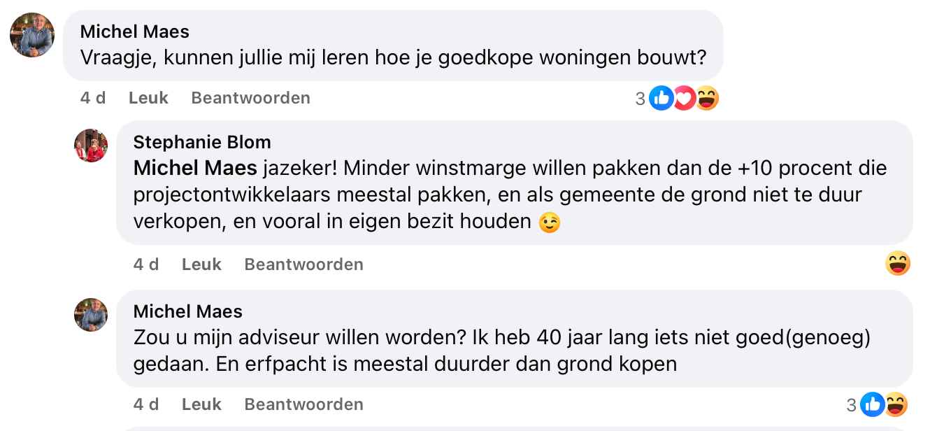 Wie wellicht ook samen aan de slag gaan, is Stephanie Blom en Michel Maes. Blom schreef op haar Facebookpagina: "Ook vanavond staat de SP Maastricht weer te flyeren op station Maastricht! Goede gesprekken over dé politieke keus die op 29 oktober eigenlijk écht centraal staat: wil je wapens, of wil je goede en betaalbare zorg? En de keuze die de meeste mensen maken is echt vrij helder: wij willen goede en betaalbare zorg! Daarom, stem SP!" Ondernemer en onder meer mede-eigenaar van Van Oys Maastricht Retreat, Michel Maes, had daarop waarschijnlijk het partijprogramma van de SP eens onder ogen genomen en stelde een gevatte vraag. Wellicht bloeit er iets op tussen die twee...