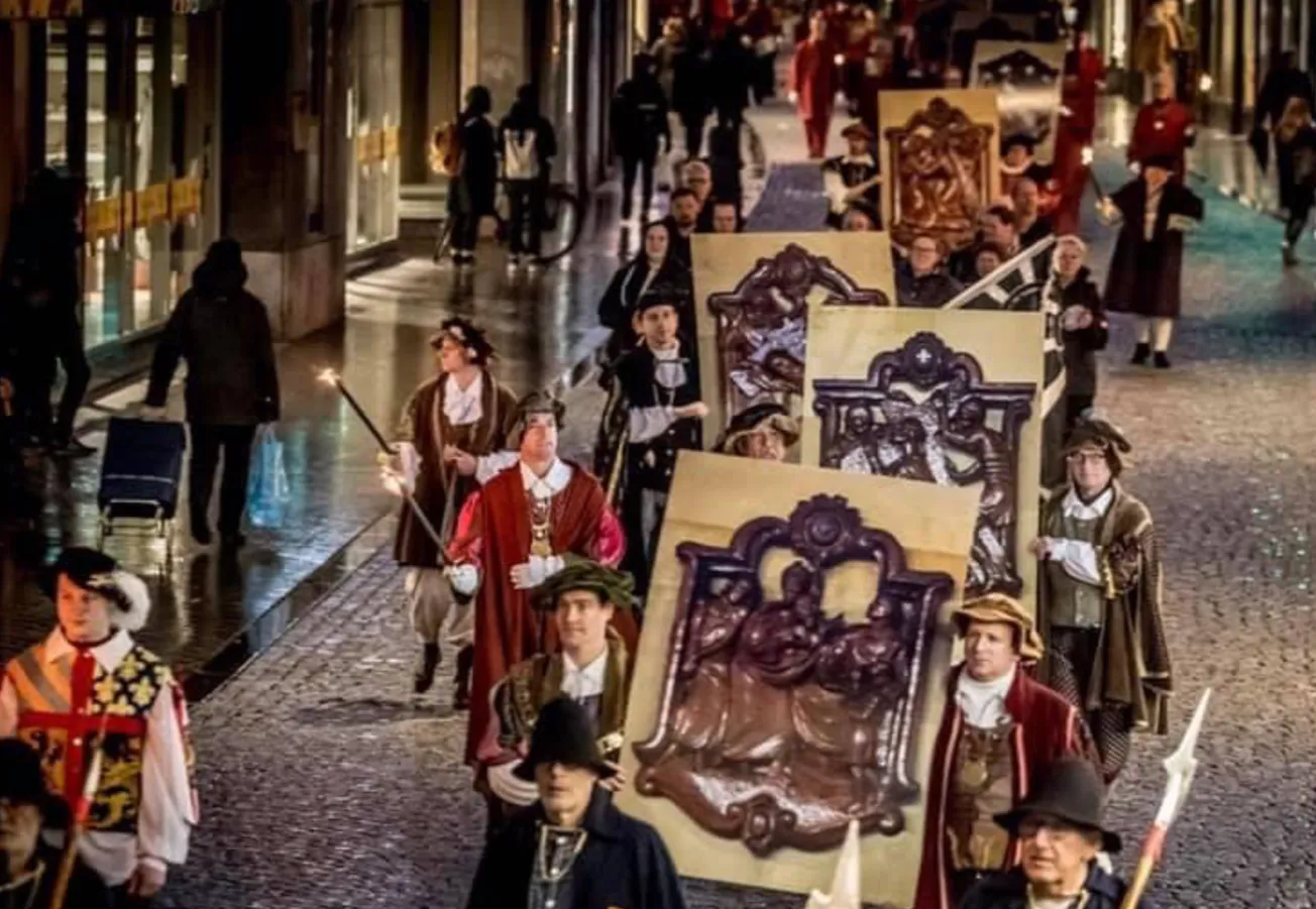Goede Vrijdag wordt in de binnenstad de Kruisweg gehouden om het lijden en sterven van Onze Lieve Heer te herdenken.