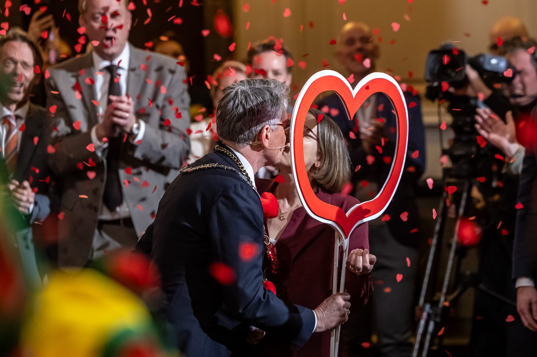 Het college had na afloop van de trailer van 'B&W vol Leefde' een mooi moment. Op deze Valentijnsdag, door de otoriteitetoeker consequent 'hertsjesdaag' genoemd, maakte het college een hartverwarmend love-gebaar.
